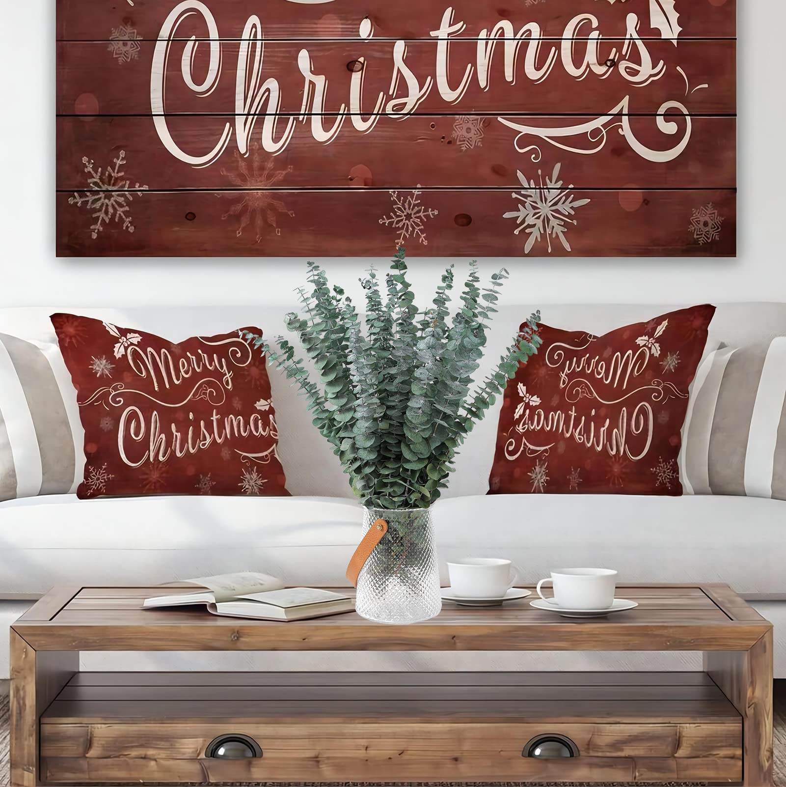 Size: Carefully selected 12 natural dried eucalyptus stems, 16-17 inches in length. Since it is a naturally grown eucalyptus leaf, the fullness of each stem varies and you can cut it to the length you want. This eucalyptus leaf is made from fresh eucalyptus leaves which are naturally dried, after long journeys, the eucalyptus may be compressed (the eucalyptus leaves can be smoothed by hand upon receipt)