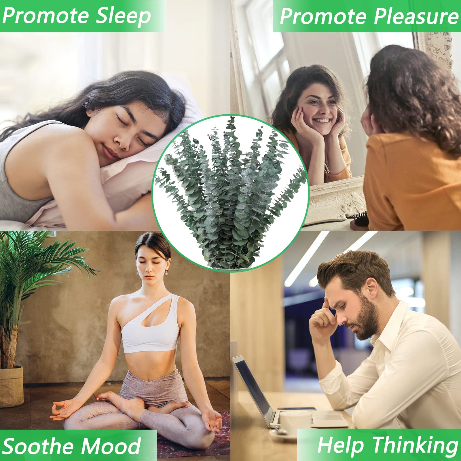 Fresh Eucalyptus Leaves: Dried Eucalyptus Leaves are made from fresh Eucalyptus without any additives, retaining the original floral aroma of Eucalyptus leaves. It smells good and calms the mind. It has calming and hypnotic properties and is a great scent to relax and release stress