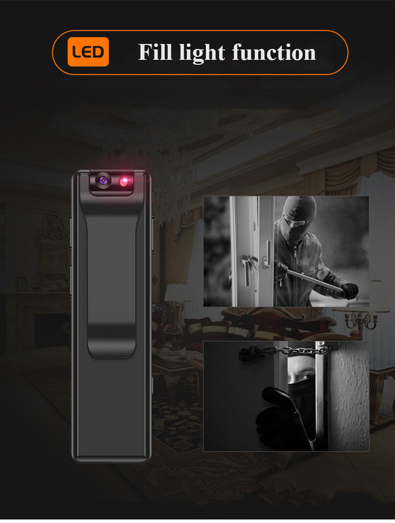 📷 Excellent Wearable Cam 📷 This mini camera is small in size, easy to carry and easy to use. The small camera can be worn on the body through the back clip, or fixed in other places through the back magnet. The lens of the body cam can be rotated by 90°, and the video is clear and smooth (1920*1080P@30fps). The micro camera also comes with an auxiliary illuminator, which is convenient for use when the light is dark. The accessories include a 32GB memory card.