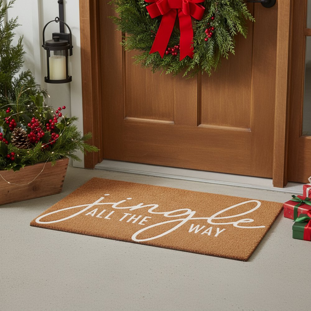Known for it's extreme durability and ability to withstand heavy foot traffic, this 17-inch x 29-inch brown and white christmas outdoor coir door mat is an ideal option for the front door or entrance way of your home or business. Crafted from coconut husks, this mat is not only functional but is an an eco-friendly and visually appealing accessory. The naturally bristled texture of coir is an efficient way to clean dirt and mud from shoes and is easy to clean and maintain. Add this festive and decorative christmas mat to create a practical yet inviting welcome to all who enter. 17.00-inch h x 29.00-inch w x 0.60-inch d.