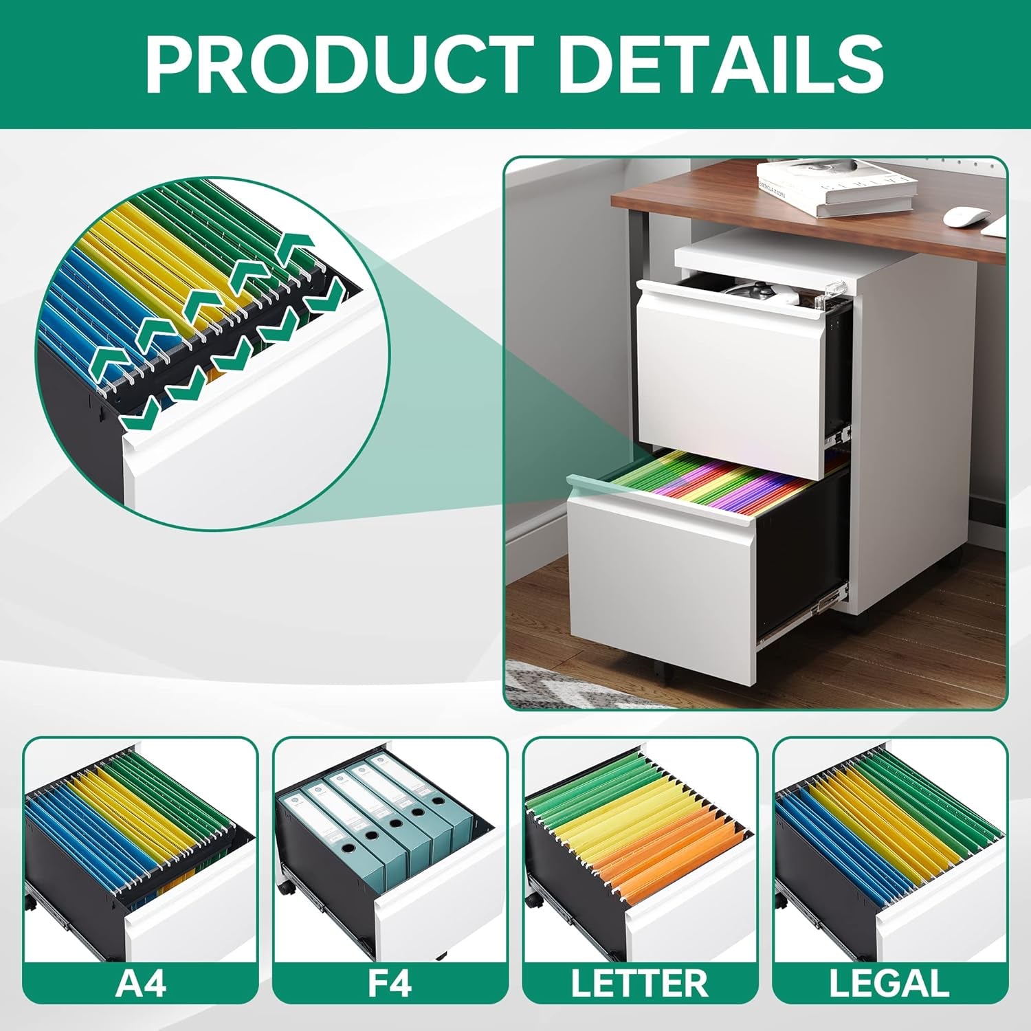 〖Document Storage Security〗One key to lock all drawers,each drawer can hang A4/F4/Letter/Legal and other file types;Each drawer can hang 150-300 files,drawer dimensions: 12.1"WX16.3"DX9.8"H.