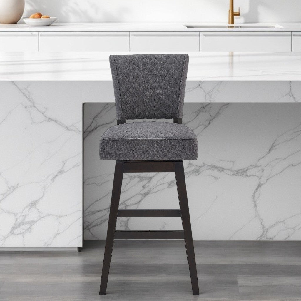 26" Gray and Espresso Fabric and Solid Wood Counter Height Swivel Bar Chair