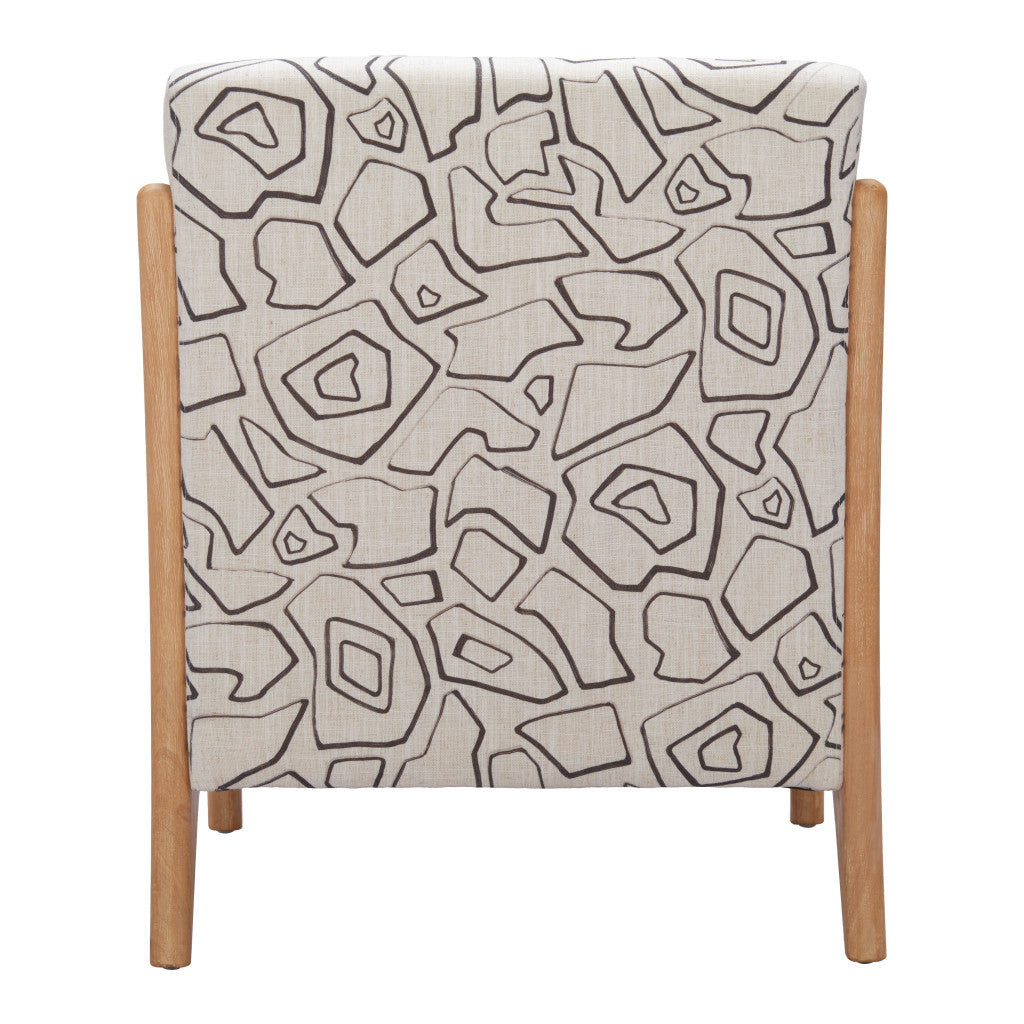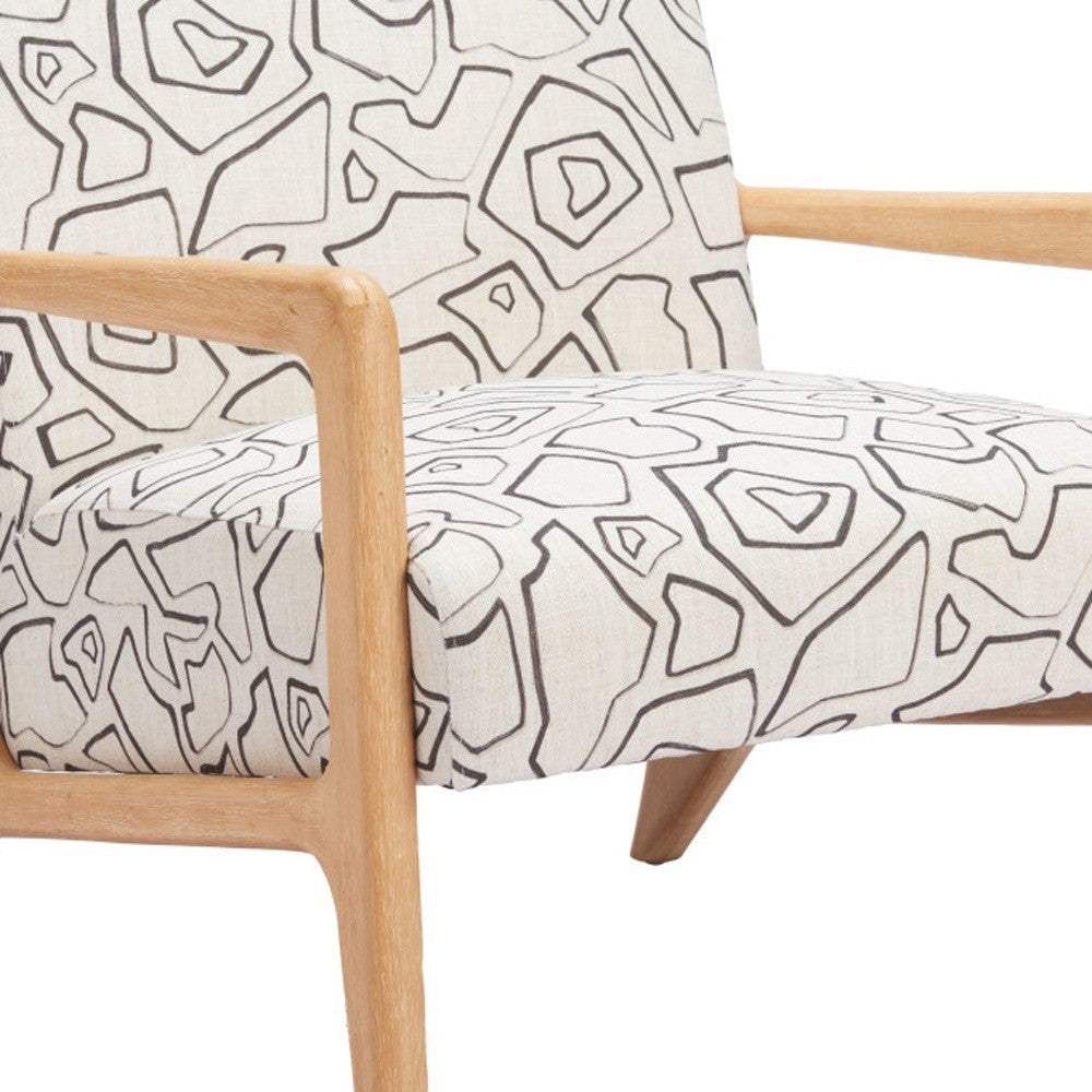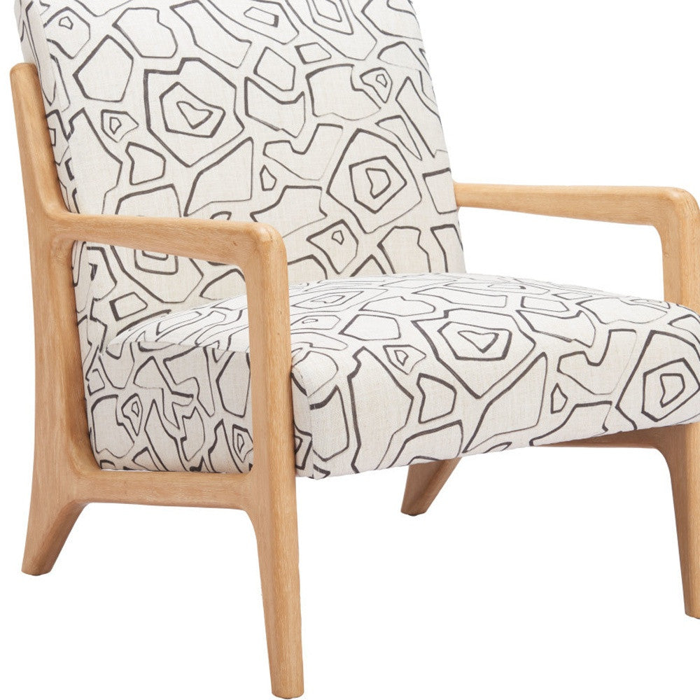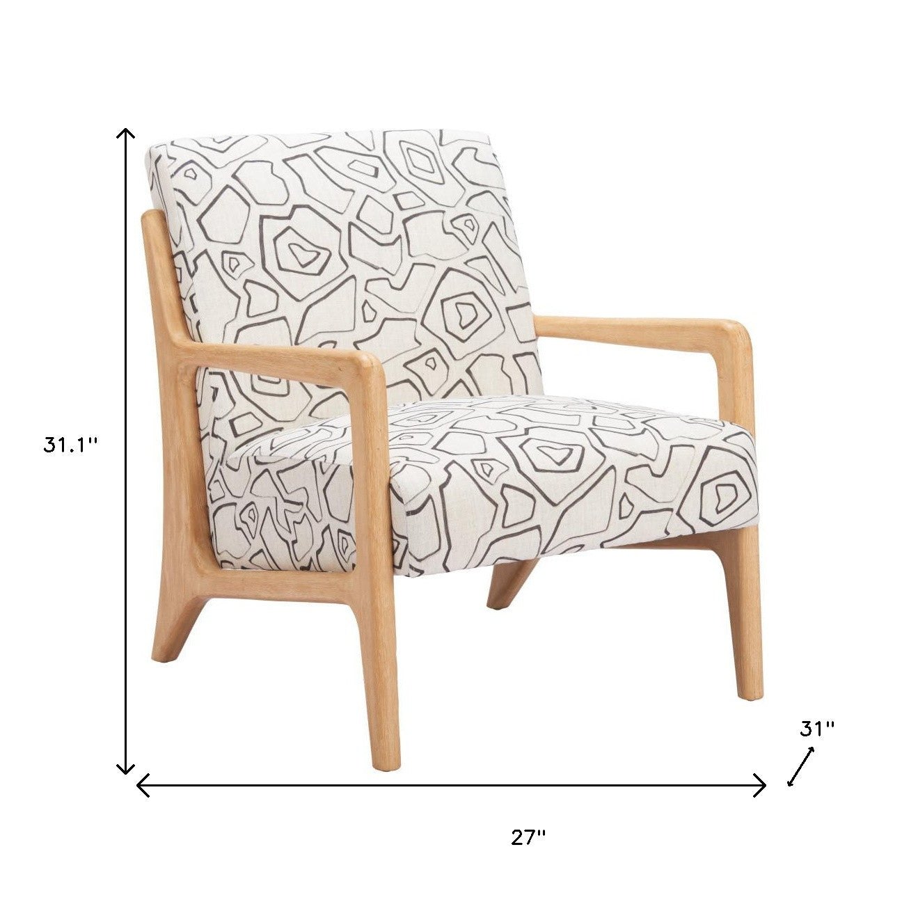 27" Beige and Natural Upholstered Geometric Arm Chair