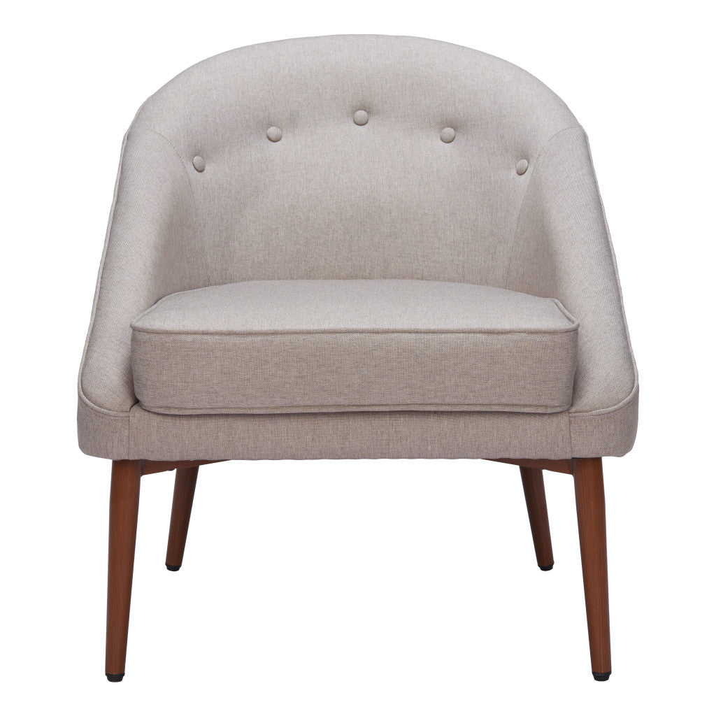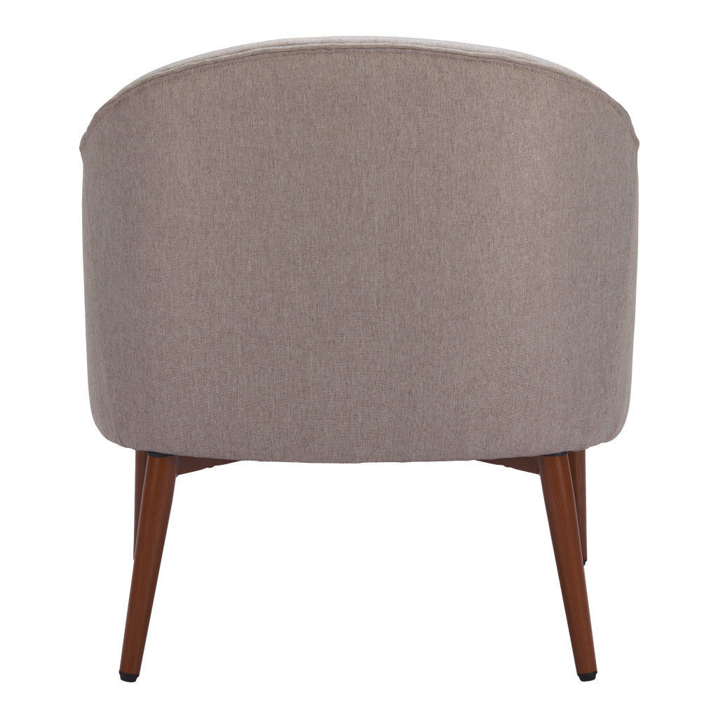 28" Gray And Brown Fabric And Upholstered Tufted Barrel Chair