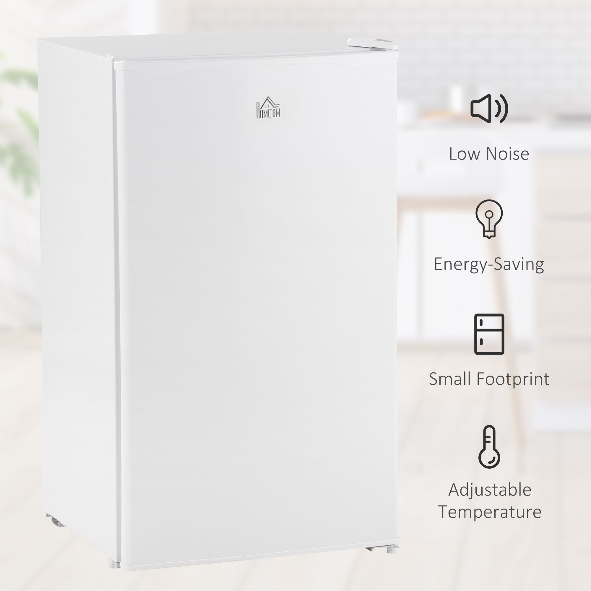 Plenty of Storage: This compact fridge has 0.35Cu. Ft. freezer compartment at the top and under is two shelves, wall storage in the door, and a crisper drawer to store any food that needs to be cold and stay cold. You can adjust the shelf to fit different-sized bottles or cans.
