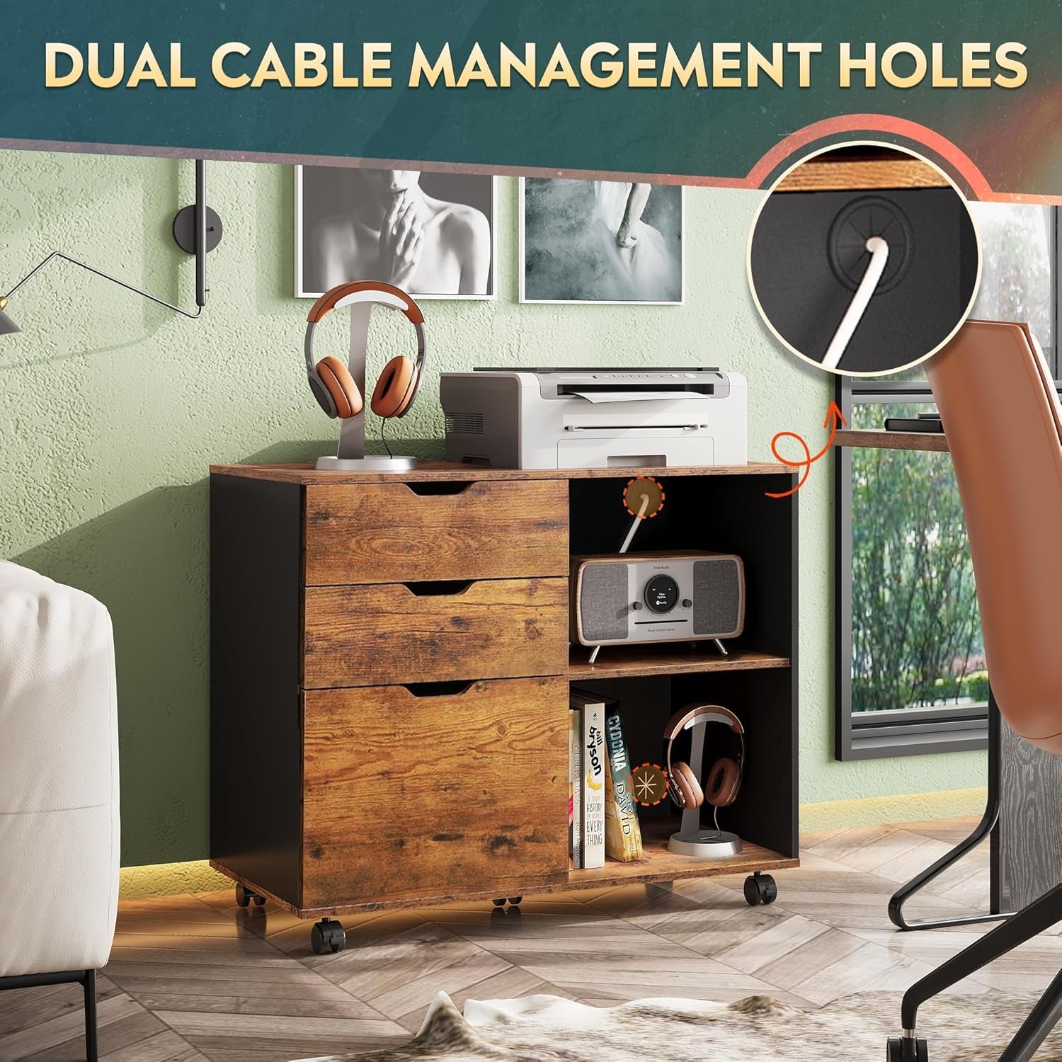 Introducing the 3-Drawer Wood File Cabinet with Open Storage Shelves—your ultimate solution for organizing office essentials. This multifunctional and stylish filing cabinet features open storage spaces along with file drawers, designed to keep your office machines, documents, and supplies in order. Its sleek and modern finish seamlessly fits into any office or home study, making it a versatile addition to your workspace.