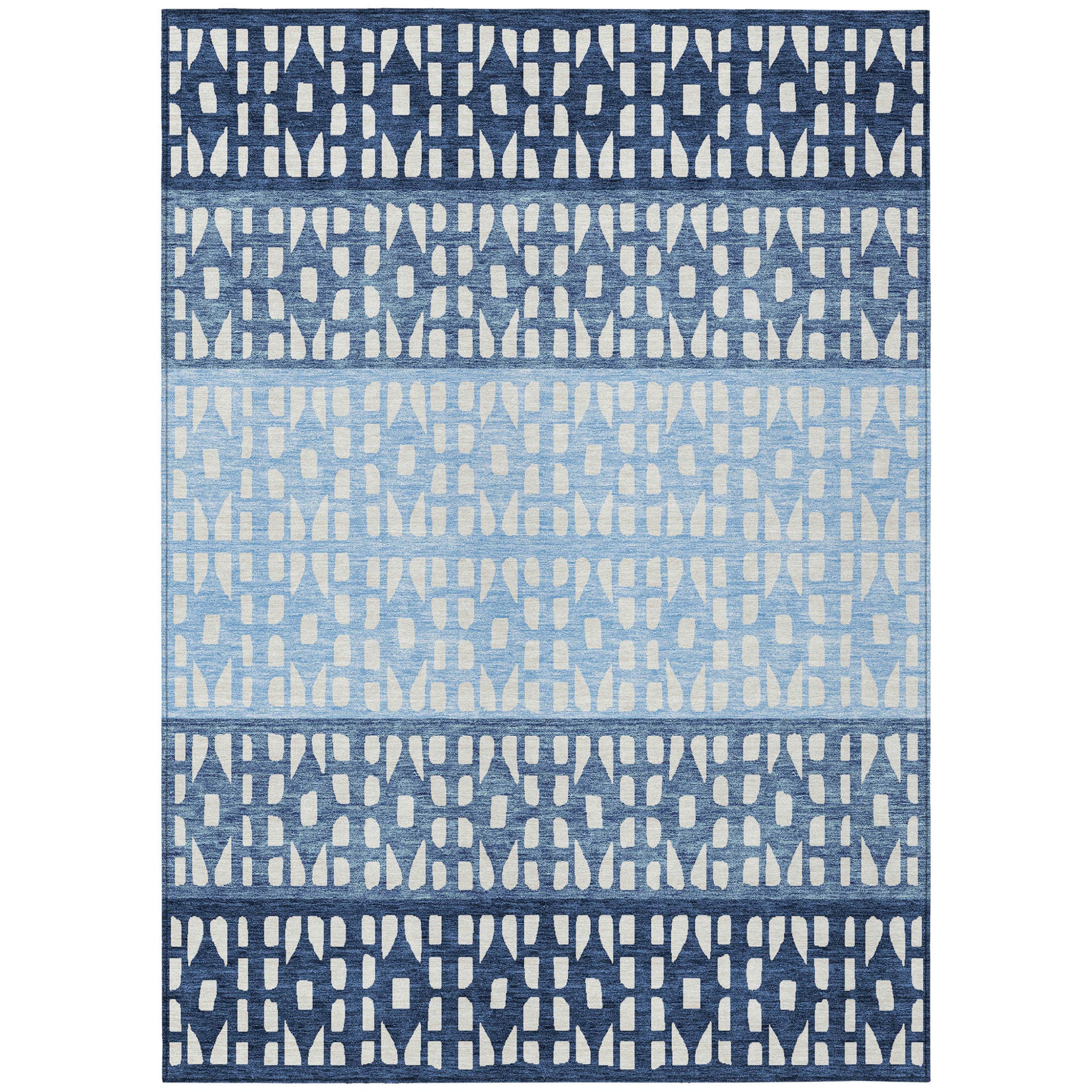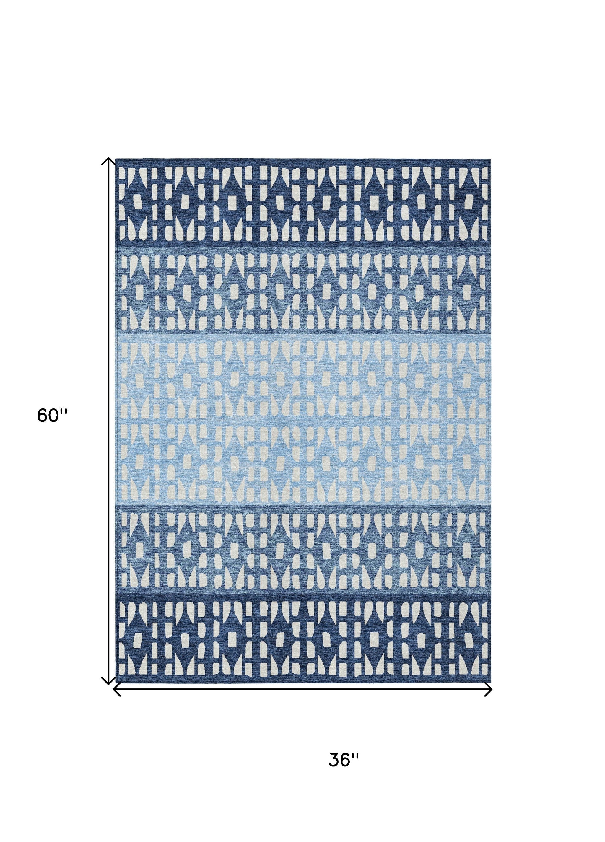 3' X 5' Blue Sky Blue And Ivory Geometric Washable Indoor Outdoor Area Rug