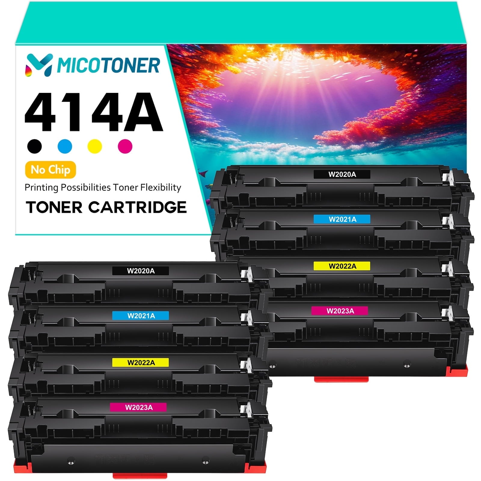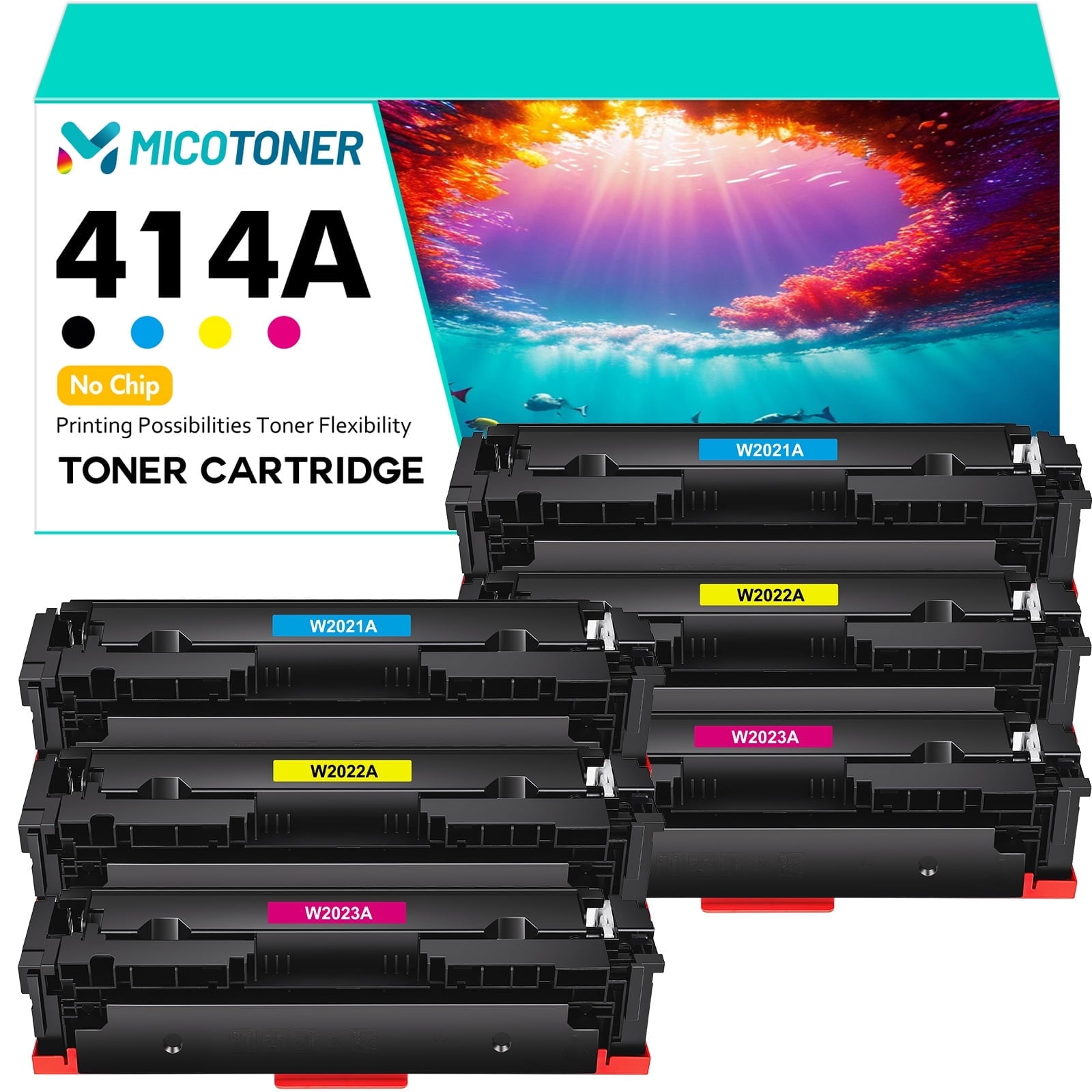 414A Toner Cartridge 4-Pack NO Chip Compatible for HP 414A W2020A Colo