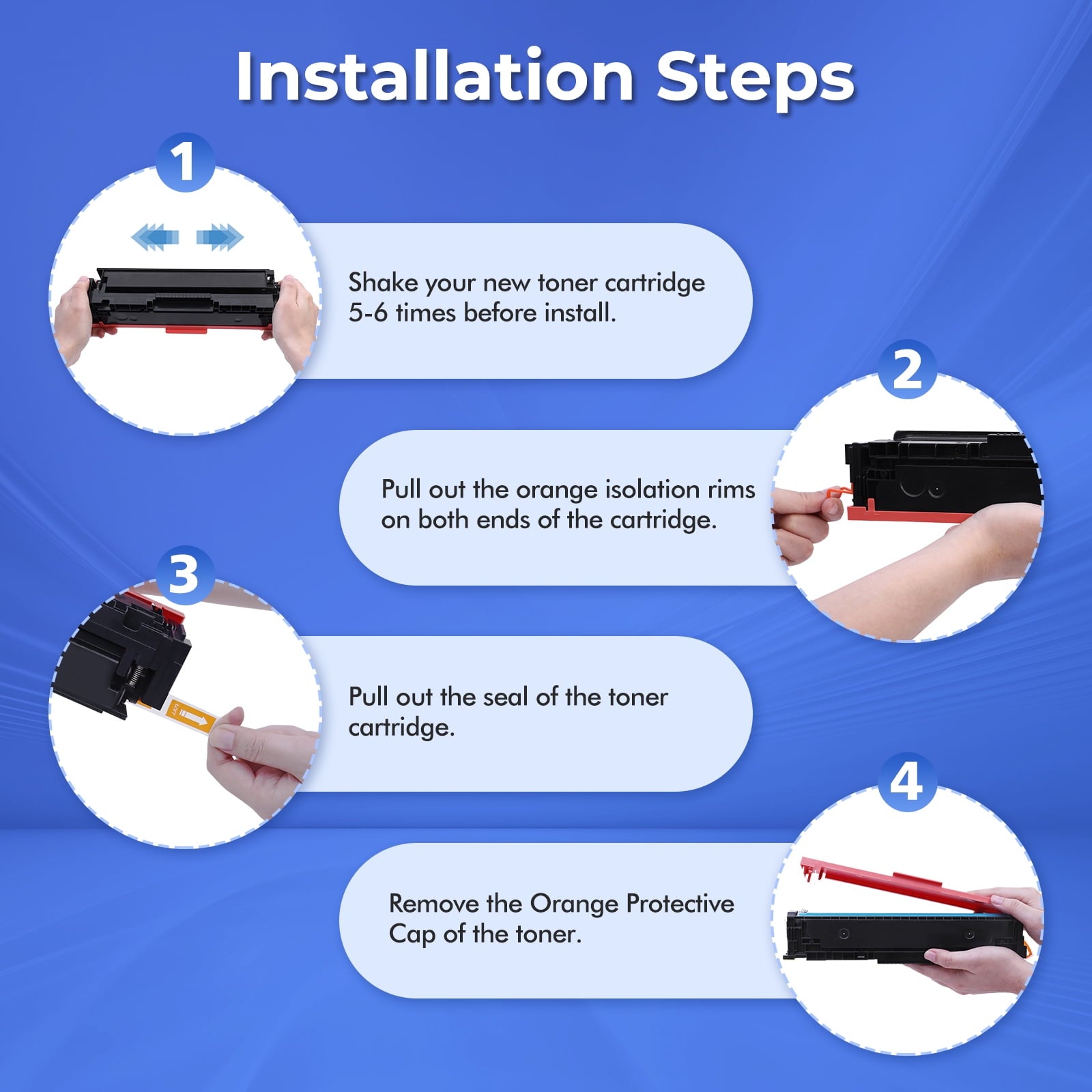 Finepix Ink is an international high-tech printer supplies company specializing in R&D, manufacturing and sale. Our Finepix Ink toner cartridges & printer inkare certified with ISO 9001 and ISO 14001 and we deliver cartridges that are produced according to the highest quality standards. Product Specification: Brand: Finepix Ink Compatible Toner Cartridge Replacement for: HP 414A 414 W2020A W2021A W2022A W2023A Compatible Toner Cartridge Replacement for Printer: HP Color LaserJet M454 M454dn M454dw,HP Color LaserJet Pro MFP M479 M479dw M479fdn M479fdw, LaserJet Enterprise M455dn, HP Color LaserJet Enterprise MFP M480f Pack of Items: 4-Pack Ink Color: Black, Cyan, Magenta, Yellow Page Yield (based upon a 5% coverage of A4 paper): 2400 Pages Per 414A Black Cartridge, 2100 Pages Per 414A Color Cartridge Cartridge Approx.Weight : 4.96 Pounds Cartridge Dimensions (Per Pack): 12.6 x 14.17 x 3.94 Inches Package Including: 4-Pack Toner Cartridge