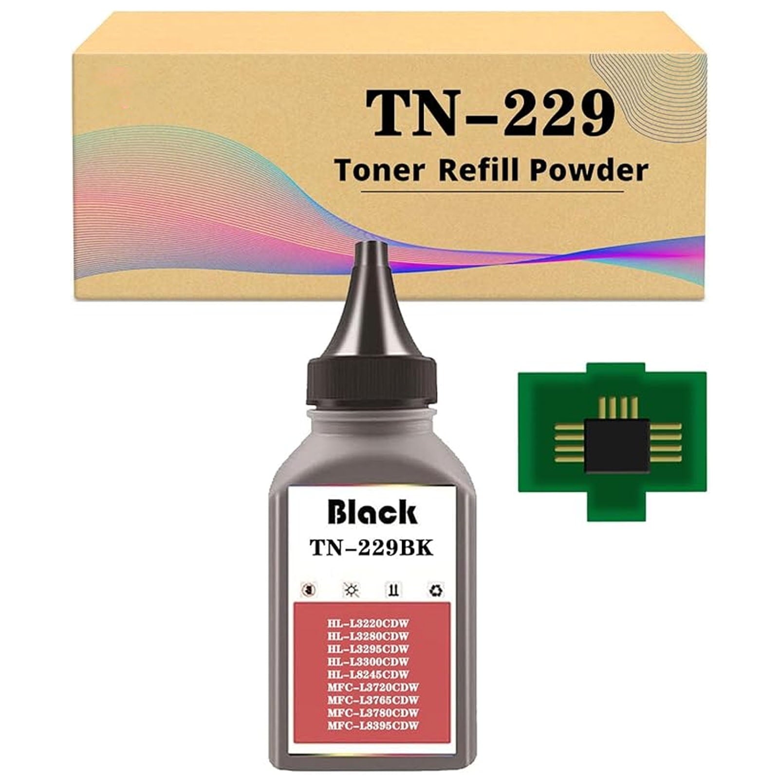 ⭐ The Toner Refill Kit contains TN229 TN-229 Toner Cartridge Chip and Refill Toner Powder ⭐ Confirm your printer model first.The toner refill powder is compatible for toner cartridges of HL-L3220CDW HL-L3280CDW HL-L3295CDW HL-L3300CDW HL-L8245CDW MFC-L3720CDW MFC-L3765CDW MFC-L3780CDW MFC-L8395CDW Printers ⭐ The Toner Refill Alternative is 45g of each bottle, which is standard and sufficient ⭐ All parts are ensured of premium quality.The chip ensures well compatible with and recognized by your printer