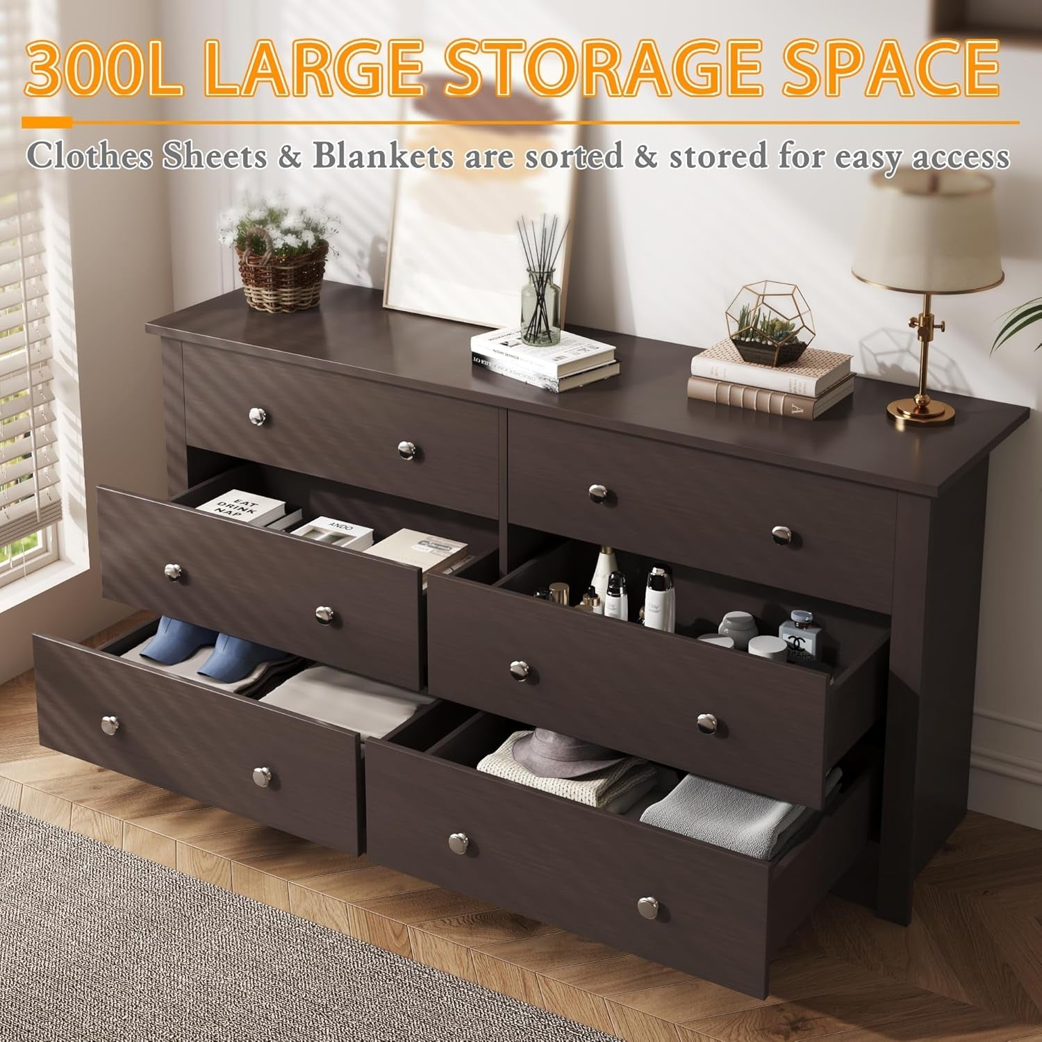 6 Wood Drawers Dresser for Bedroom, Double Dresser for TV up to 65