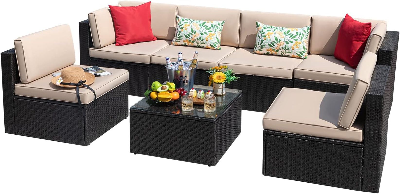Transform your outdoor space with the Comfortable 7-Piece Outdoor Wicker Sectional Sofa Set. This modern and stylish sectional is designed for exceptional comfort and versatility, making it the perfect addition to your patio, porch, or garden.
