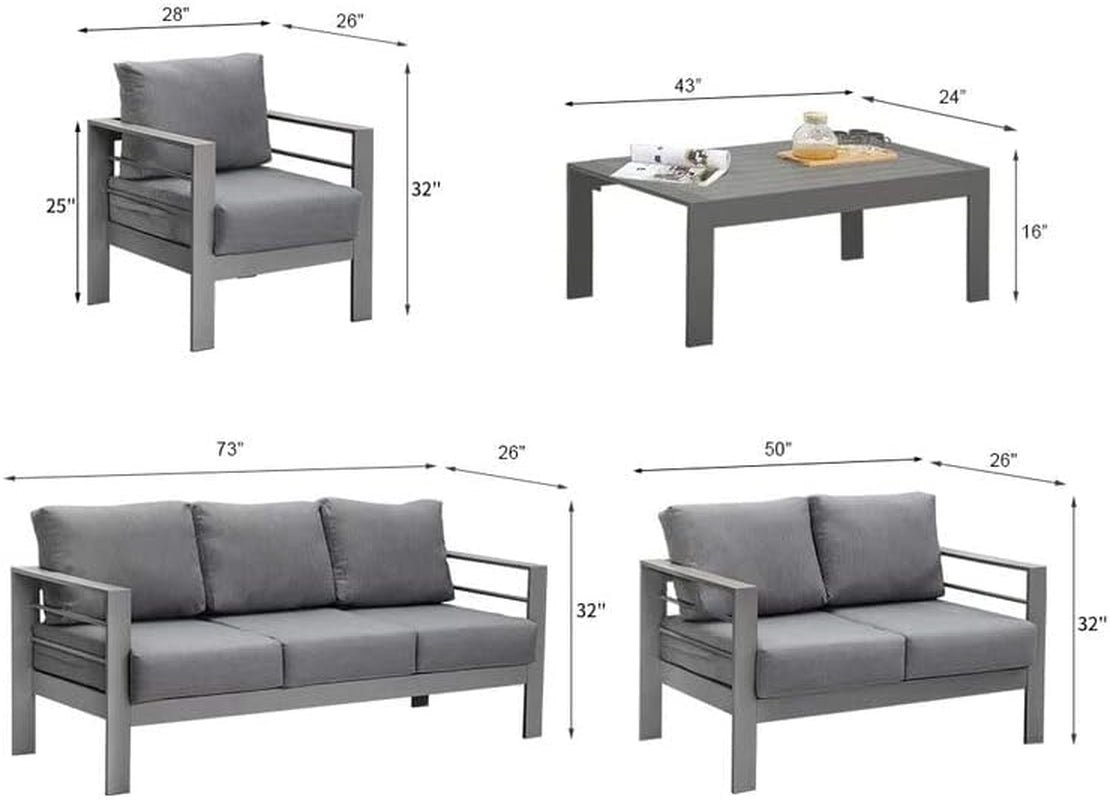 Elevate your outdoor space with this modern and durable 7-piece patio furniture set, designed for relaxation and style. Crafted with premium materials, this aluminum outdoor sofa set features everything you need for a cozy gathering with family and friends.