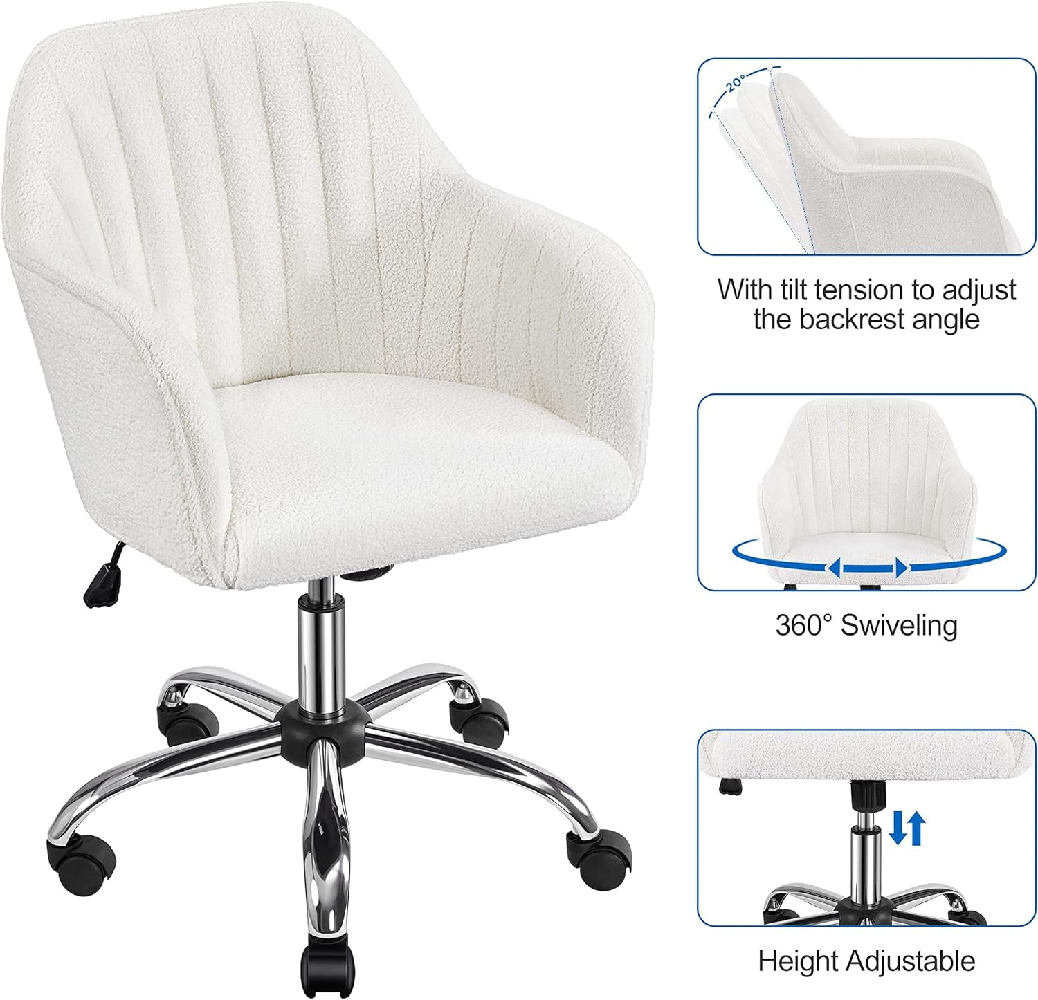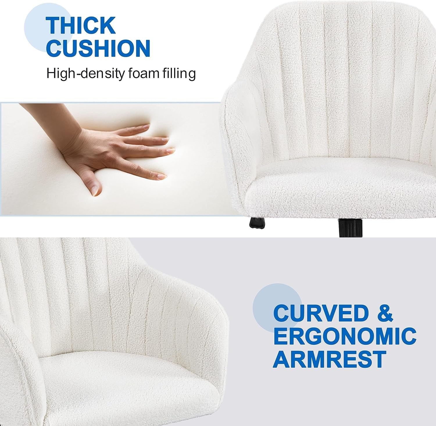 Modern Boucle Desk Chair, Soft Height-Adjustable 360° Swivel Computer Chair for Home Office Ivory