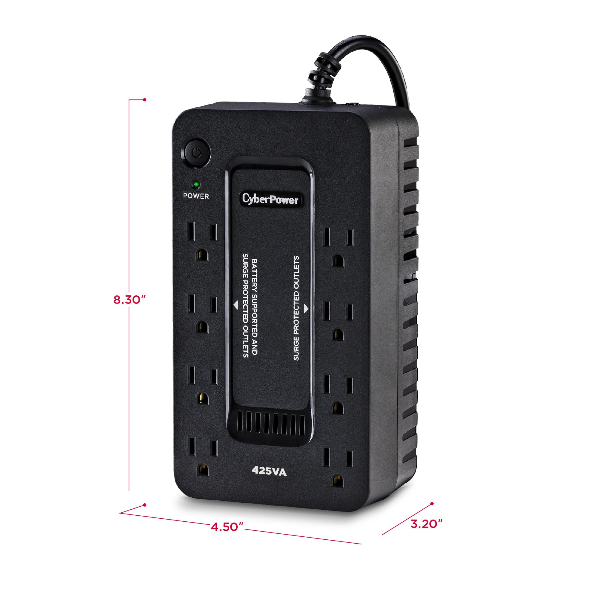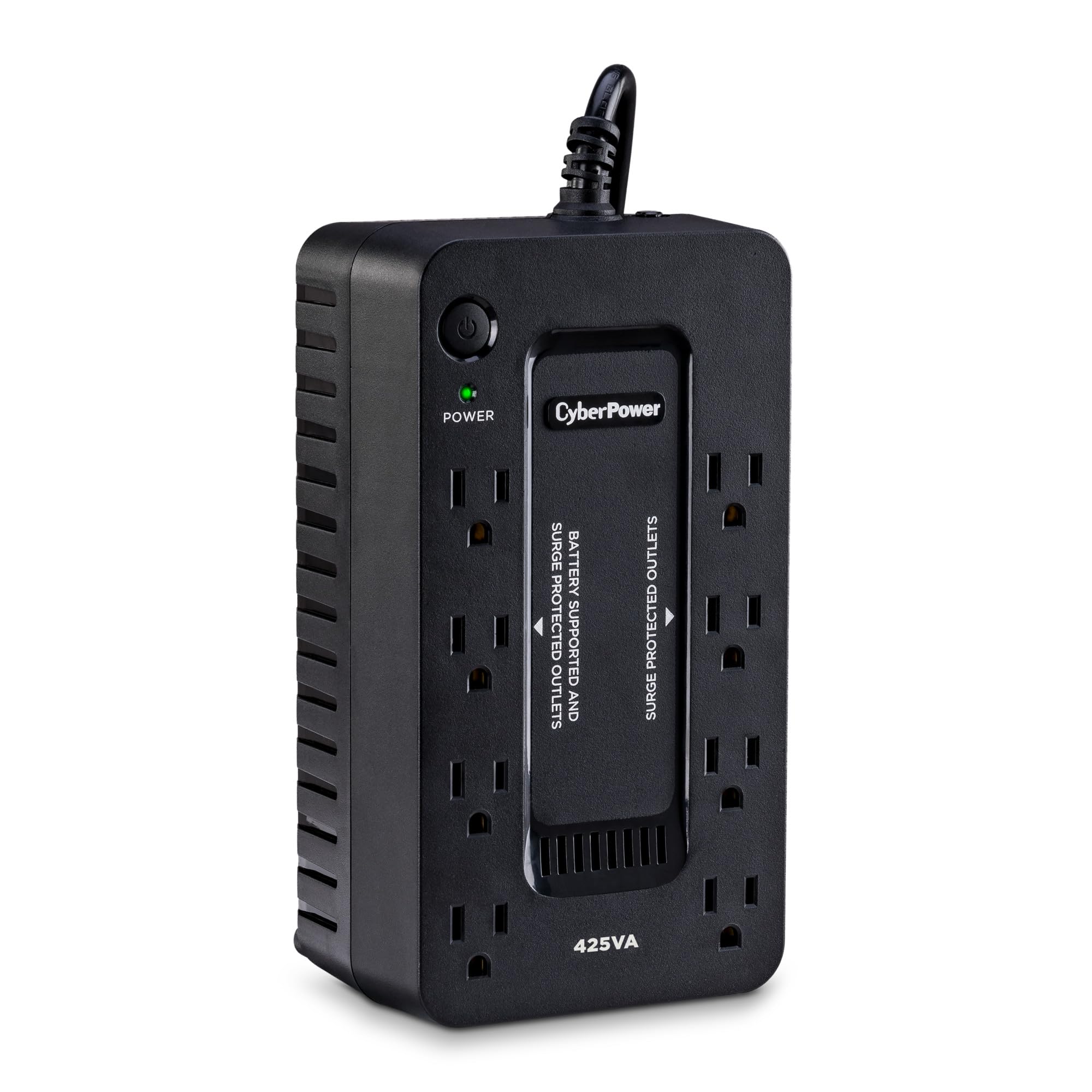 The CyberPower ST425 Uninterruptible power supply (UPS) system provides battery backup and surge protection for lightning-induced surges and other power events that can damage electronic equipment. This unit delivers enough battery backup to power connected electronics through utility power failure and enough runtime to perform a graceful shutdown to protect against the loss of data and damage to valuable electronics during longer outages. Including a sleek design, this UPS is perfect for all your home office and entertainment needs, including computers, gaming consoles, and Broadband routers. With a 75K USD lifetime connected equipment guarantee and a three-year warranty, you can trust CyberPower commitment to the quality of this battery backup with surge protection.