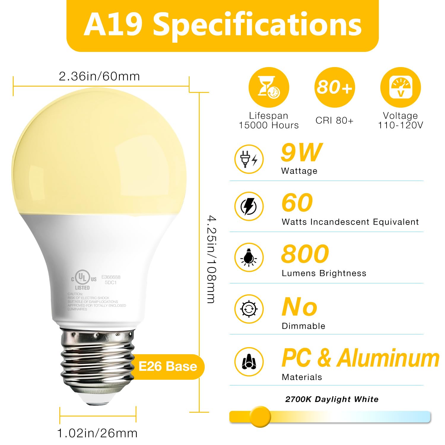 | Special Feature | Brightness: 60W equiv., ~800lm, Energy Efficient: 9W energy-saving, Eye-Friendly: Instant on, no-flicker, Long Lasting, Non-Dimmable See more |