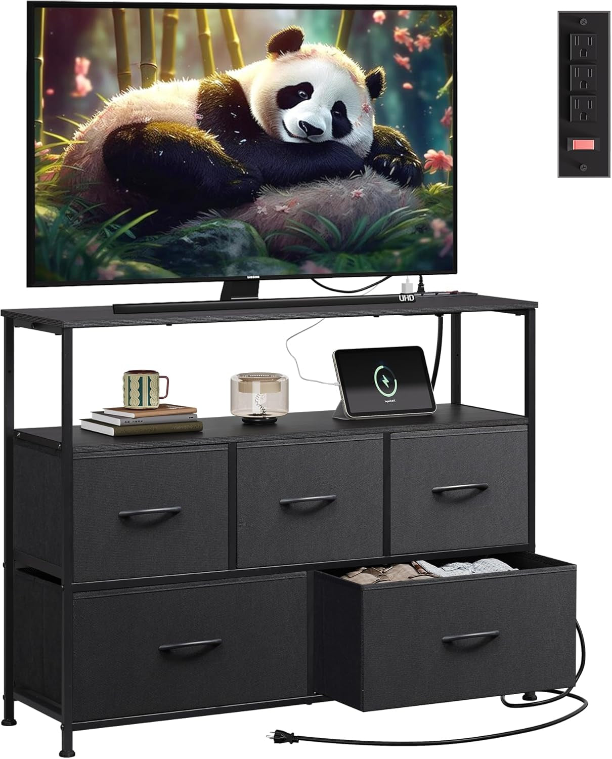 Dresser TV Stand for Bedroom, Entertainment Center with Open Shelf and