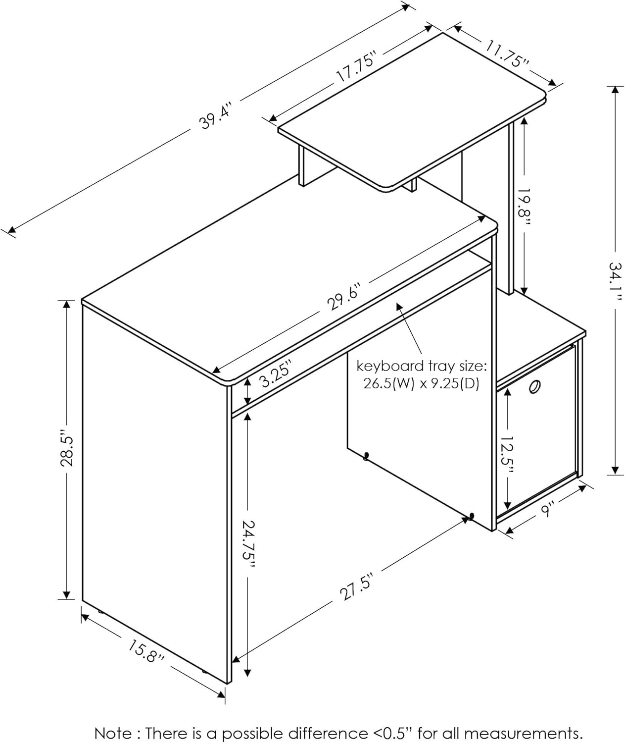 Desk Top Dimensions: 29.6(W) x 28.5(H) x 15.8(D) inches