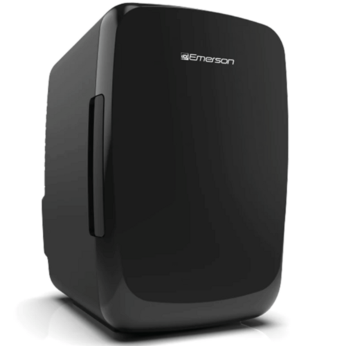 Introducing Emerson's 4-liter mini fridge - perfect for keeping up to 6 cans of beverages and snacks chilled. Its compact size and space-saving design make it ideal for any room, while its thermoelectric cooling system keeps items chilled to 28-30 degrees F below ambient temperature. The fridge operates quietly with minimal vibration and has a locking latch mechanism for added security. Experience the convenience of having chilled items within reach!