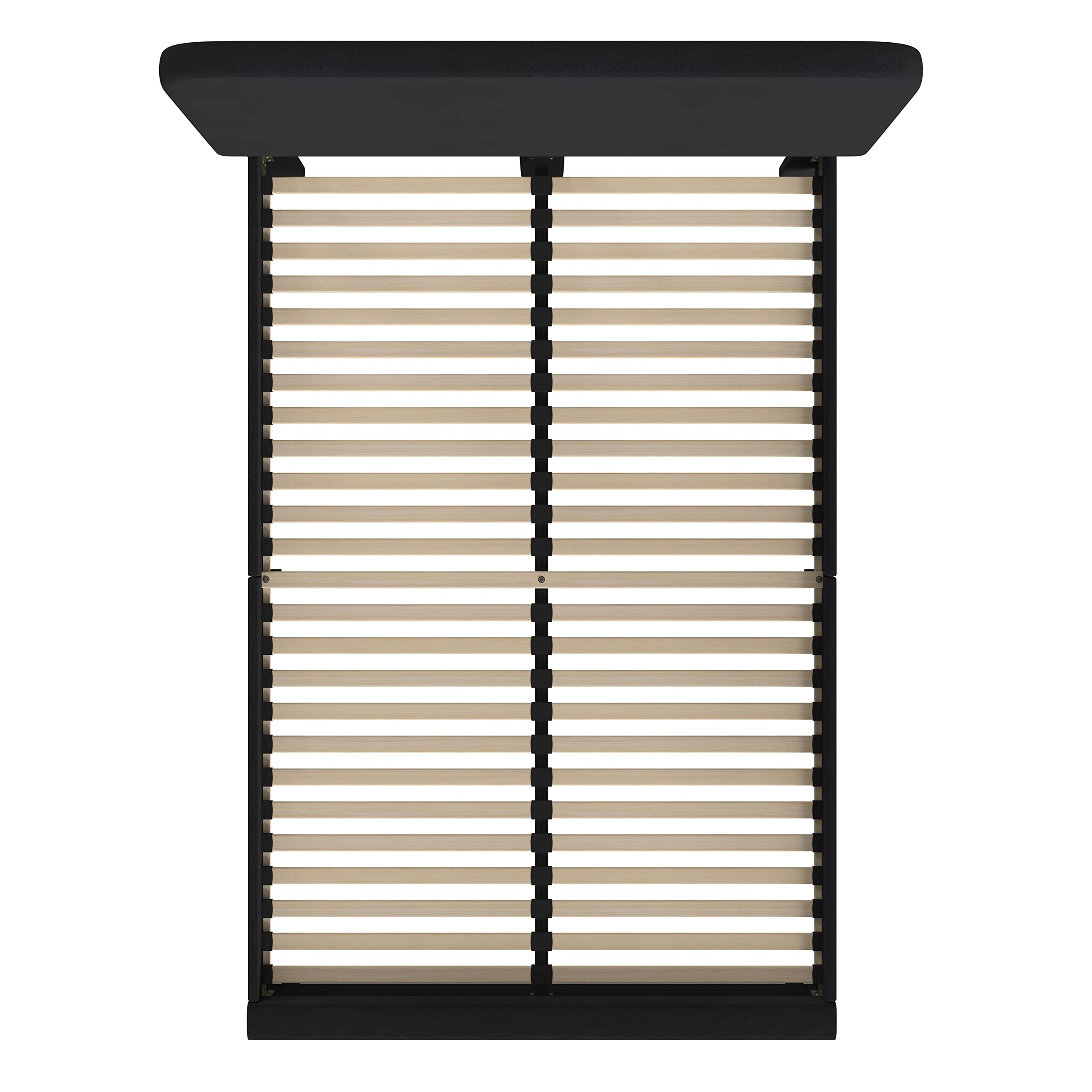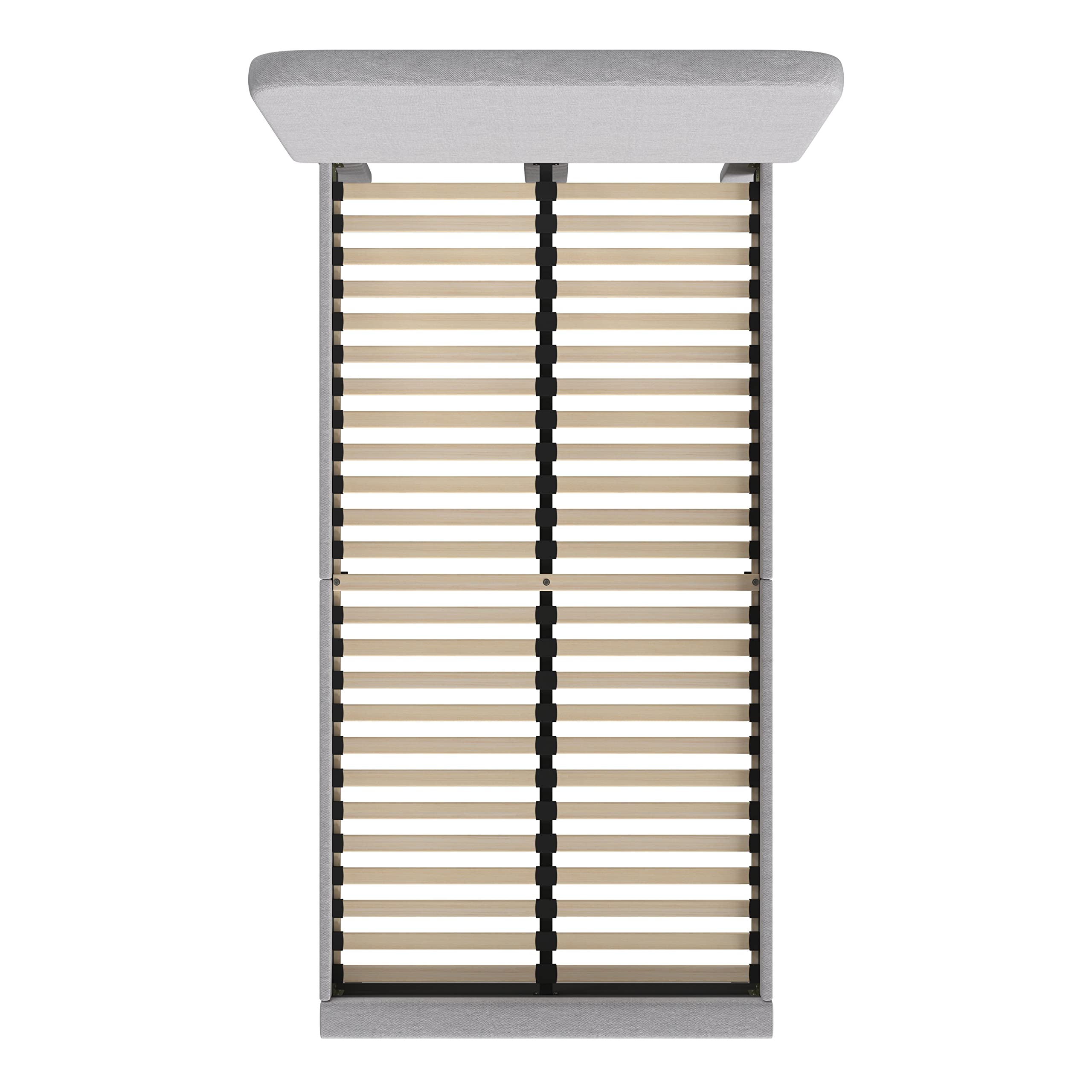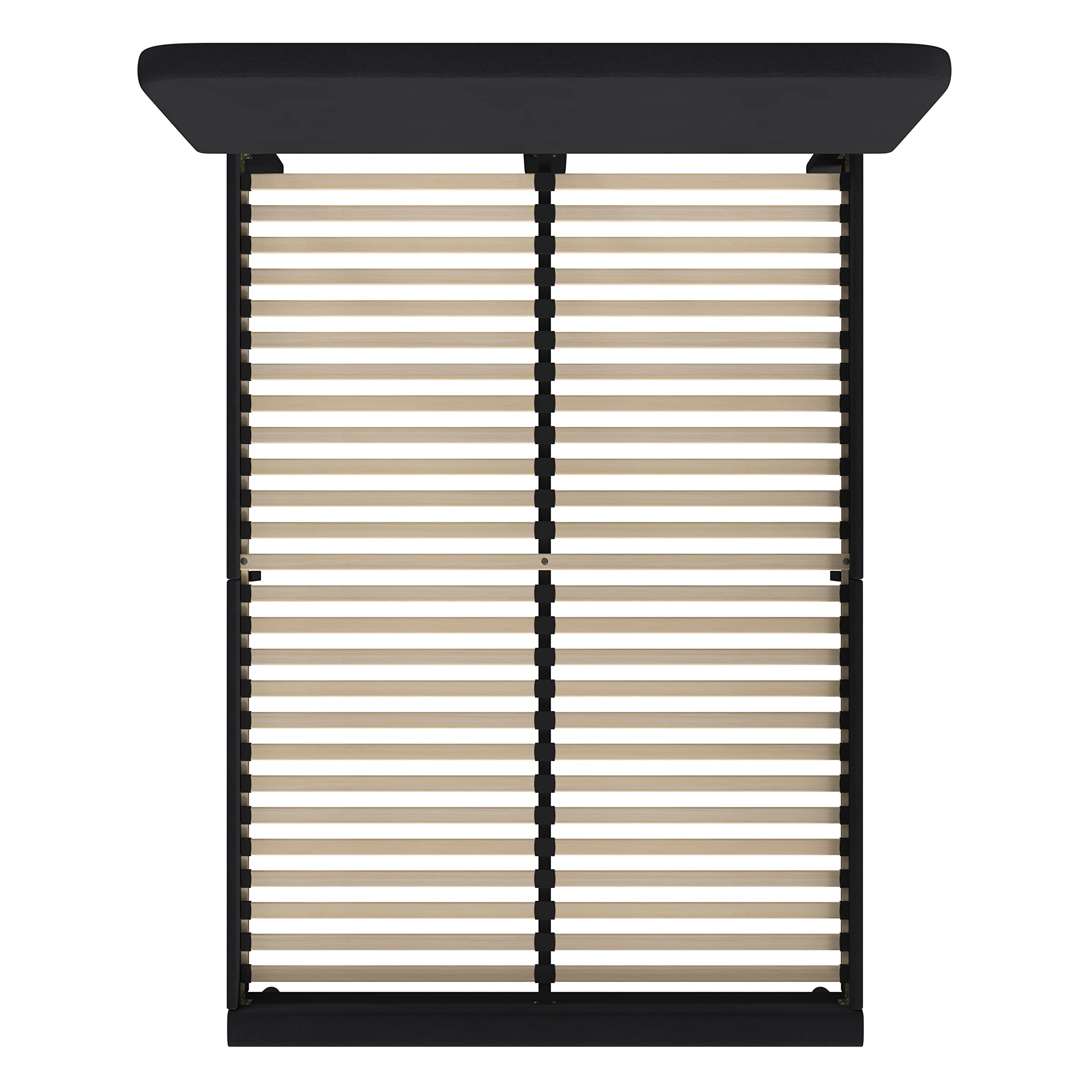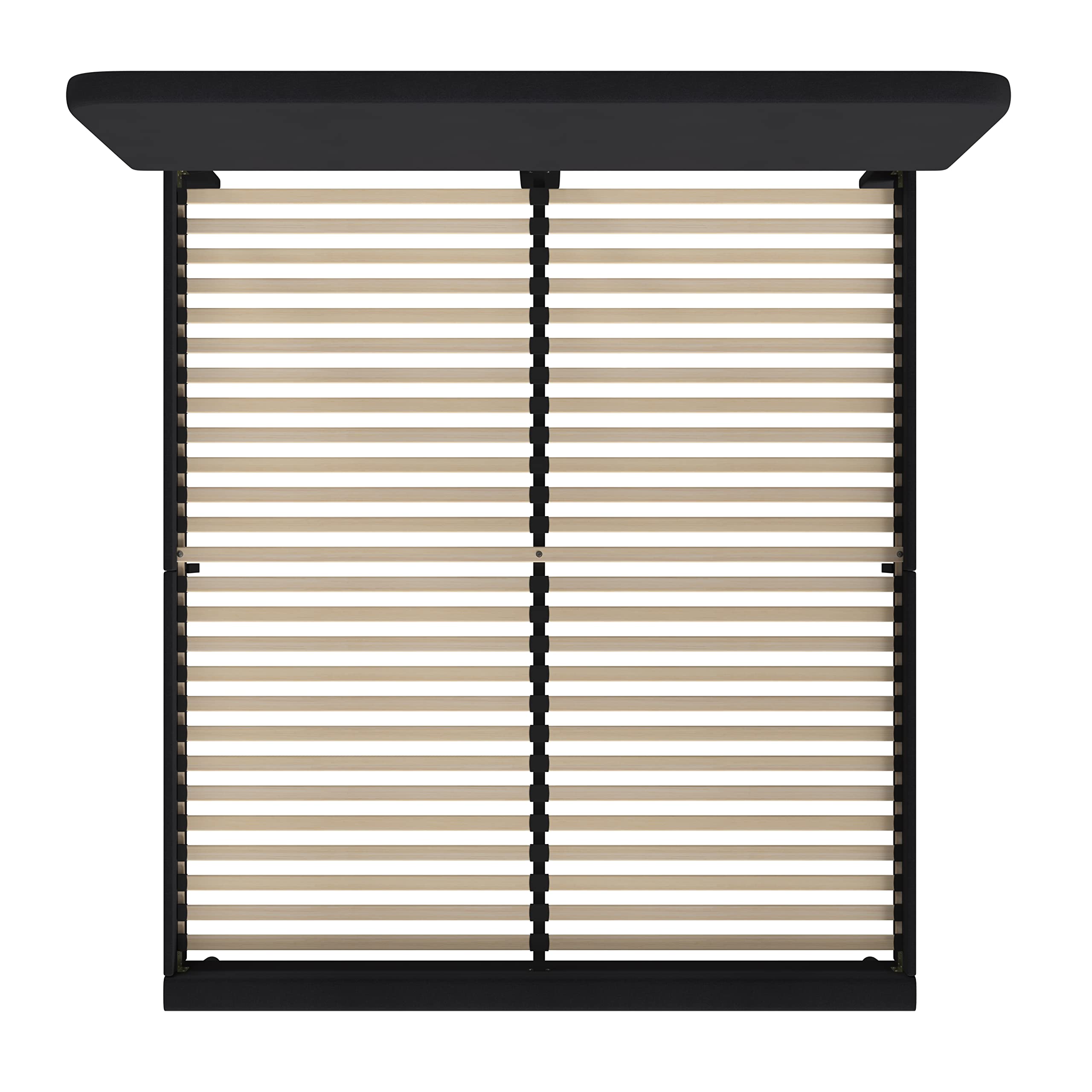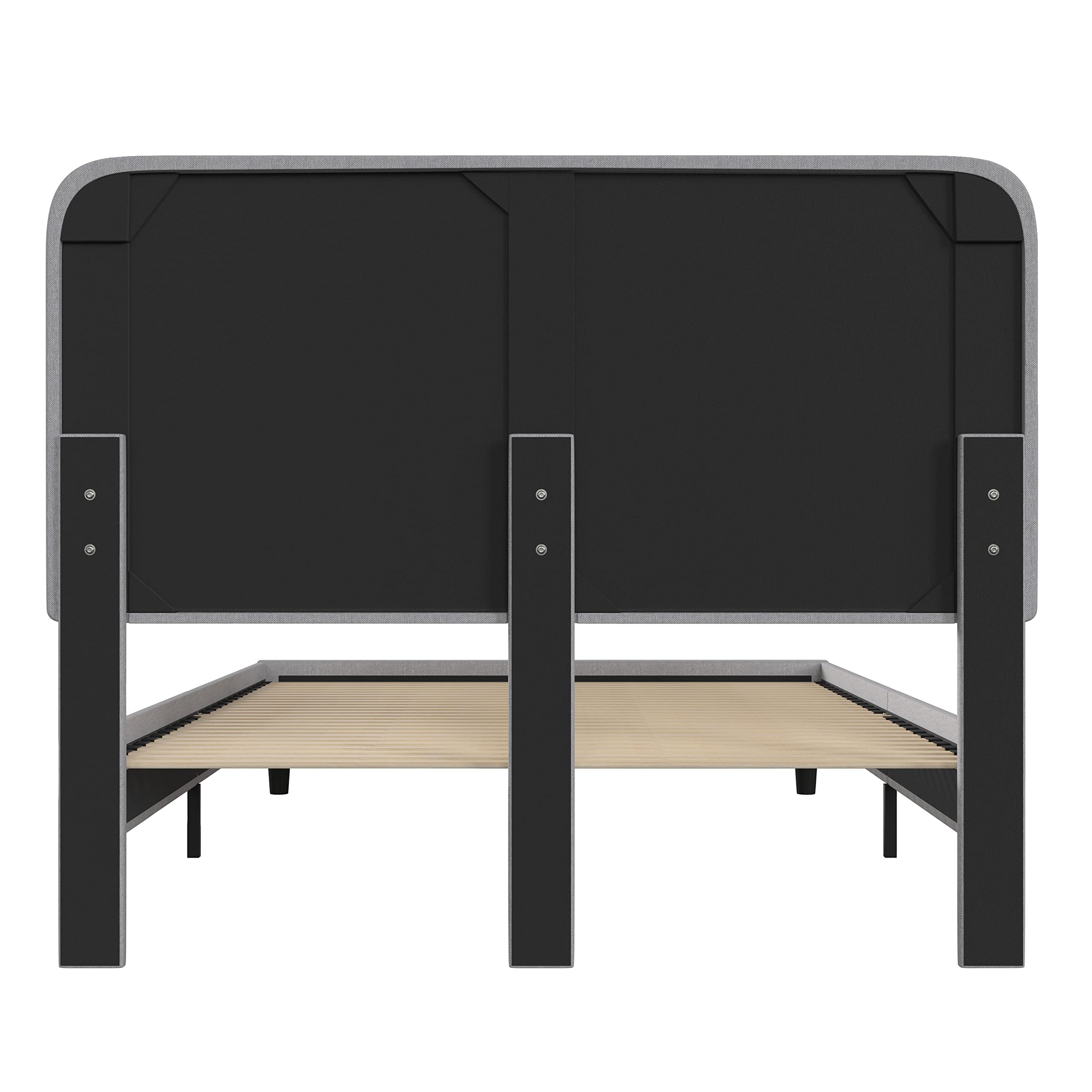 Enhance any bed with the upscale look and added comfort of the Flash Furniture Addison Fabric Upholstered King Size Platform Bed. This bed boasts a classic design featuring a soft charcoal fabric upholstered headboard with gently rounded corners and a space-saving, stylish low profile footboard to add timeless elegance to any master bedroom or guest bedroom in your home. 14 sturdy wooden slats with iron side legs and a middle support leg accommodate almost any mattress, so no foundation or box spring is required. Constructed with a sturdy wood frame and steel metal brace with wood screw reinforcements, this upholstered bed holds up to 800 pounds of static weight and withstands years of quality use. Fixed plastic floor glides protect hard flooring surfaces when moving the bed, and the low profile bed can be wiped down with a damp cloth to remove dust or soil to keep it looking great. This king size bed measures 78.5"W x 85.75"D x 51"H. Assembly takes less than one hour thanks to the step-by-step illustrated assembly instructions with included tools.