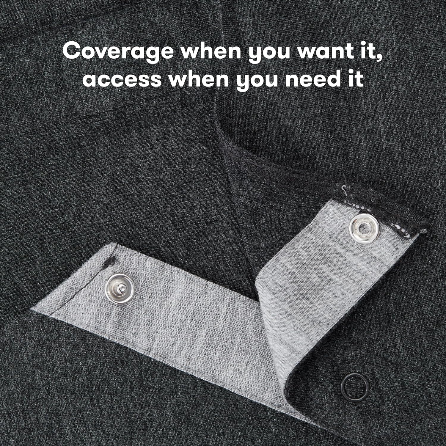 The softness of your favorite t-shirt with quick-access snaps for skin-to-skin and nursing, and a rear closure that won't leave you flapping in the wind when doing laps around the hospital. Designed to look (with pockets!) and feel better, from the first contractions to the first pictures, and walking around with it under your robe. We've got you covered, front and back.