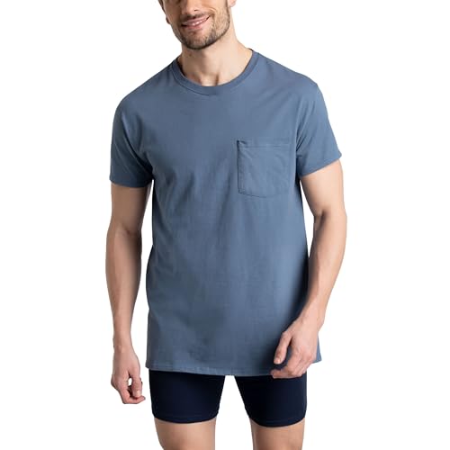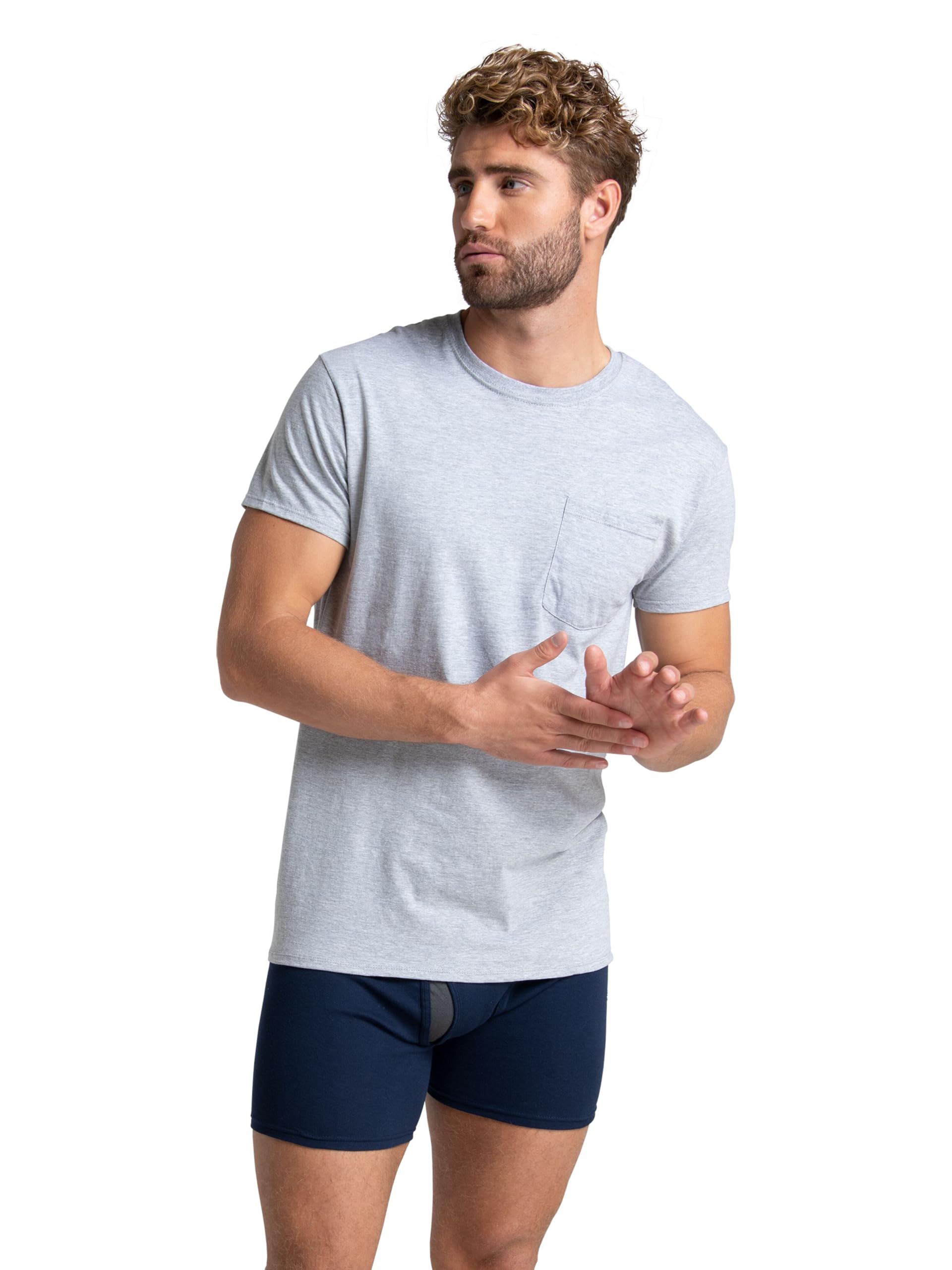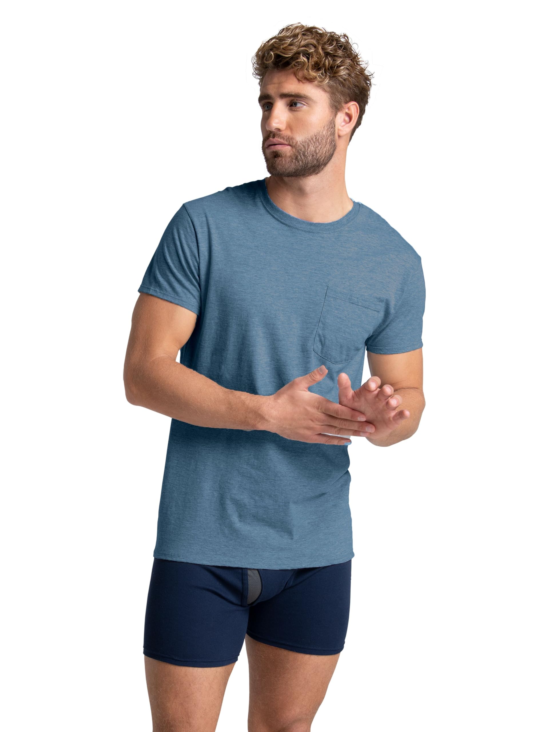 Our Men's Pocket T-shirts are a casual wardrobe staple that you are going to love to live in. Featuring a collar, super soft cotton and reinforced pocket, the Fruit of the Loom® men's Pocket T-shirts are designed for comfort and made to last. Each shirt has long lasting construction and quality that you can expect from Fruit of the Loom®. Live your life more comfortably with Fruit of the Loom® men's Pocket T-shirt. These are designed to wick moisture away, so you can stay cool and dry.