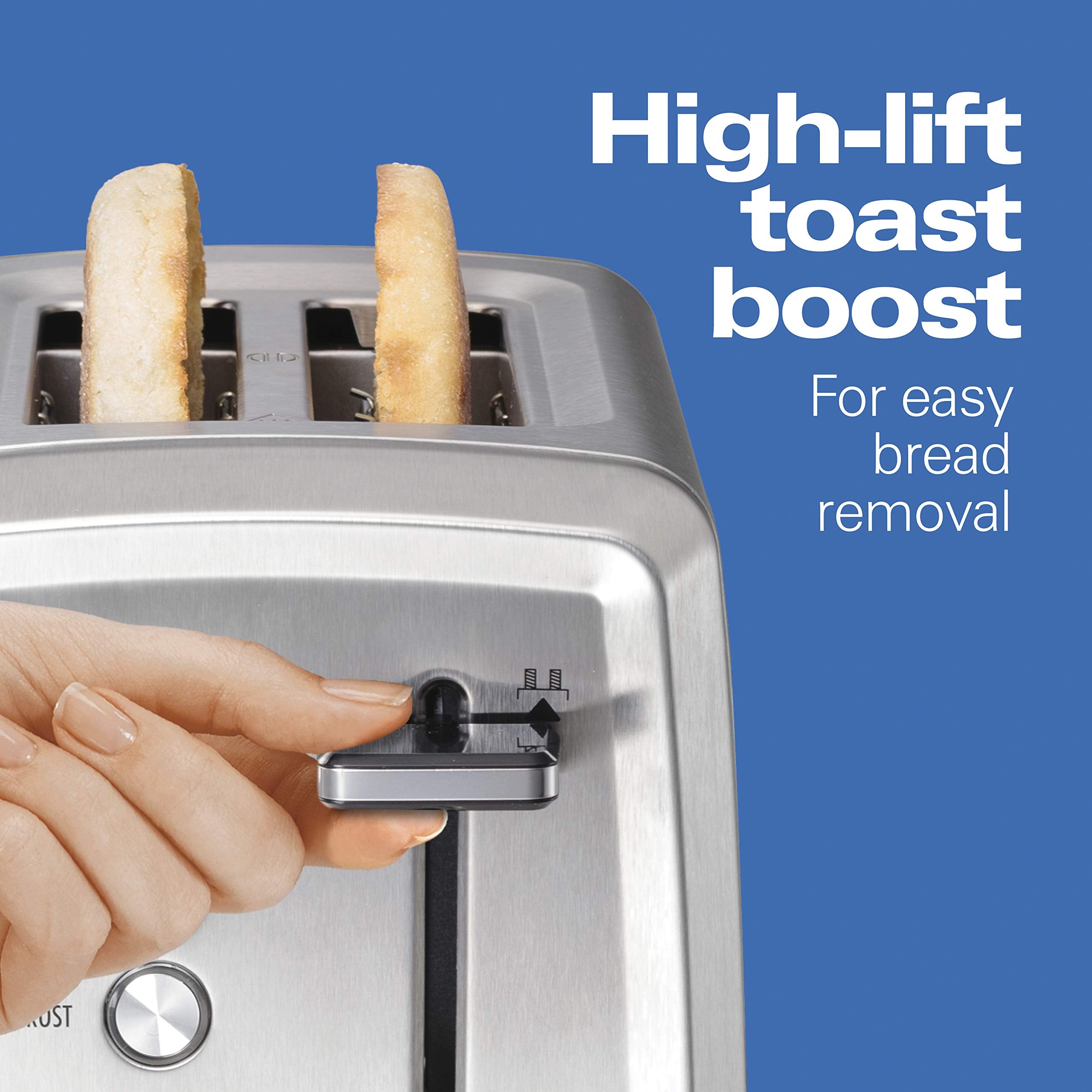 • EASILY RETRIEVE SMALLER-SIZED BREADS: The Toast Boost feature on the bread toaster lifts smaller breads like English muffins so they're easier to retrieve after toasting.