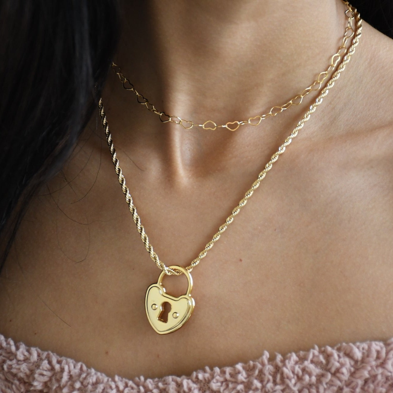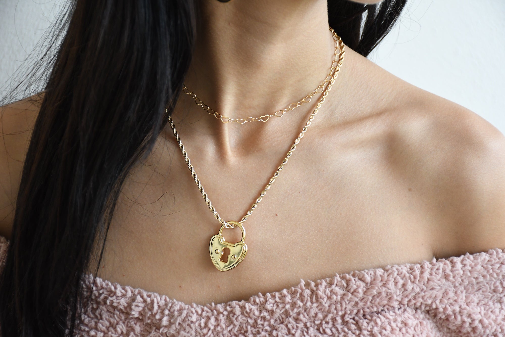 This New Valentines Day Chain is the perfect gift for your loved ones this season. Paired with our open heart choker, this rope chain comes with our Heart Lock Pendant to finish the look.