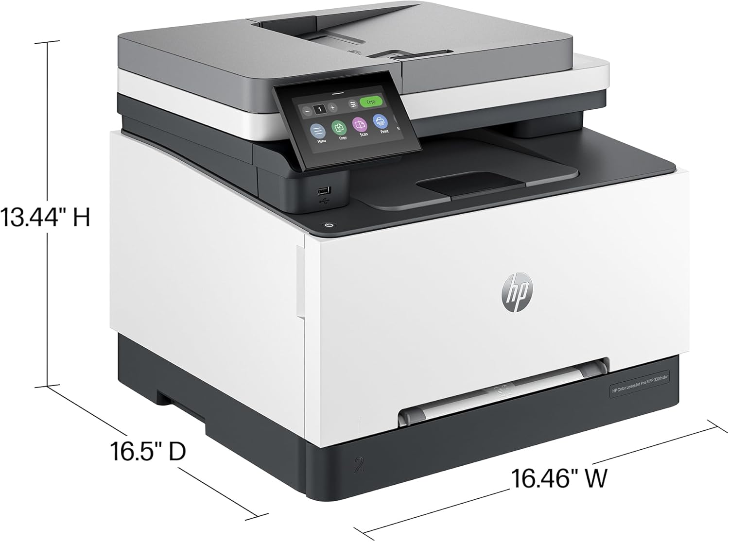Ideal for offices, get vibrant laser-quality color and powerful productivity with the Color LaserJet Pro MFP 3301sdw. This all-in-one color laser printer is loaded with features and incredible speed perfect for offices. Print, scan and copy from anywhere with HP app. Connect via wireless or ethernet with the 3301sdw, an mfp that has built-in Wi-Fi® and HP Wolf Pro to keep your information secure.