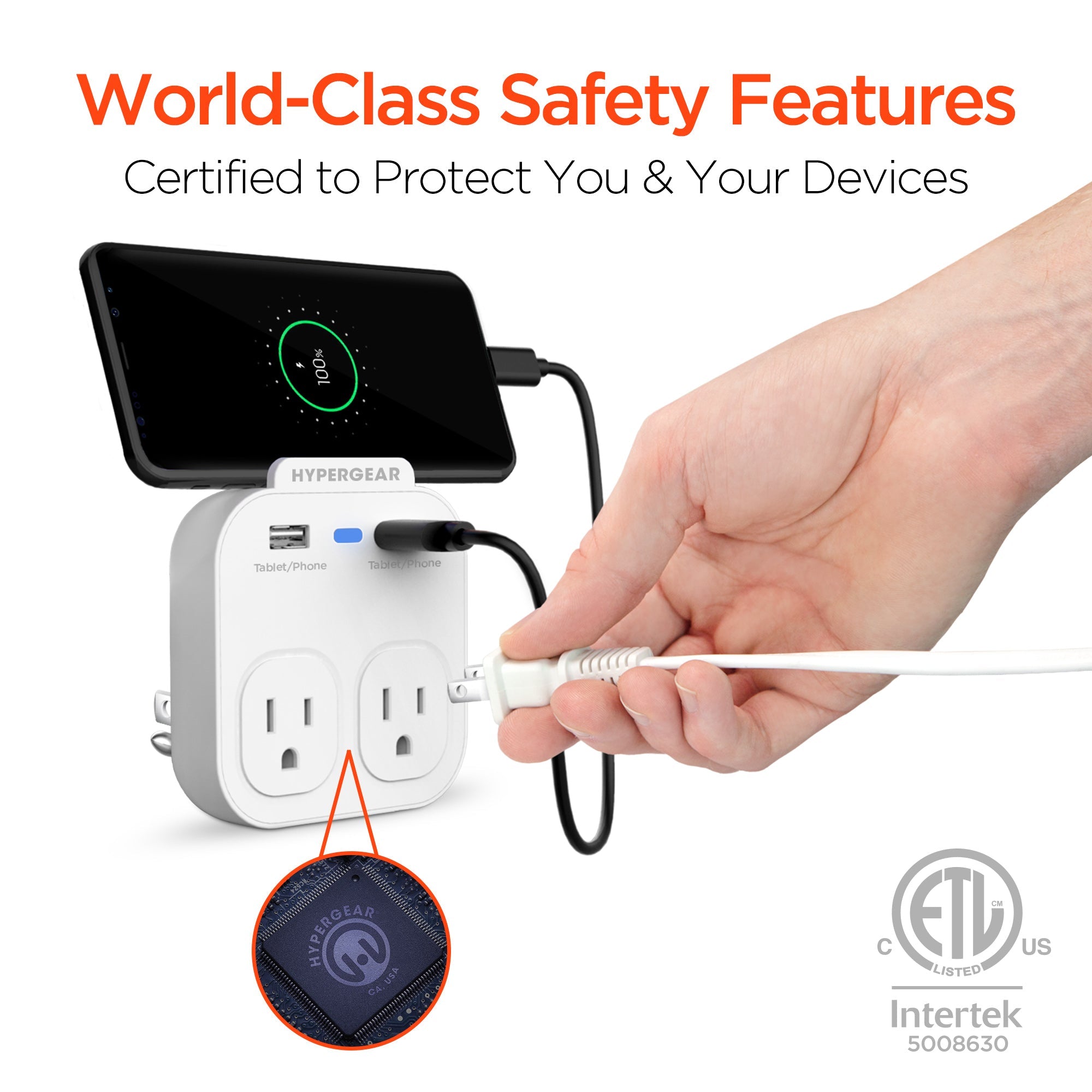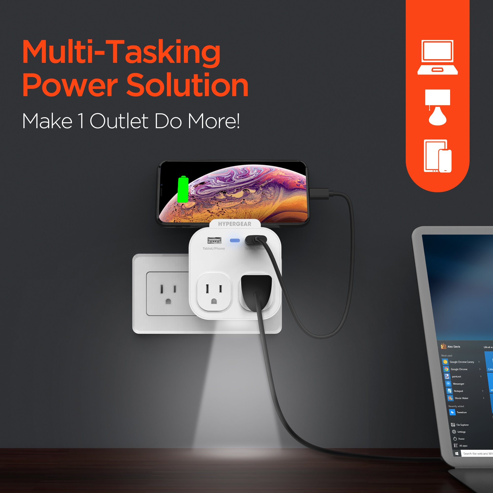 Short on outlets? Keep your everyday electronics plugged in and fully charged. With 2 grounded power outlets and 2 USB ports, this 4-device charger makes each outlet do more! It’s the perfect solution to get maximum power from every room in your home or office. The wall-mount design is a space-saver and the low profile makes it easy to fit in tight spots. Don’t settle for less, make each outlet do more!