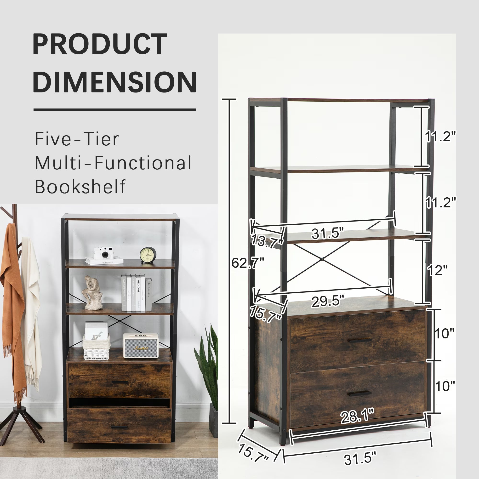 The multiple layers provide ample space for books, documents, and decorative items. The file cabinet drawers provide convenient storage for important documents, keeping your workspace tidy.