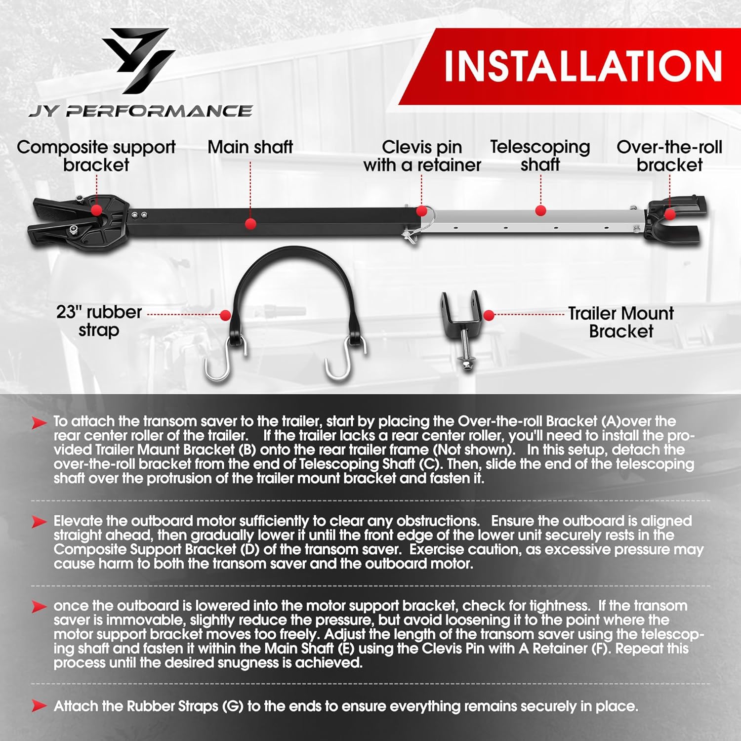 JY PERFORMANCE Adjustable Boat Transom Saver for Outboard Motor, Boat Motor Transom Support with Composite Head for Outboard Motor