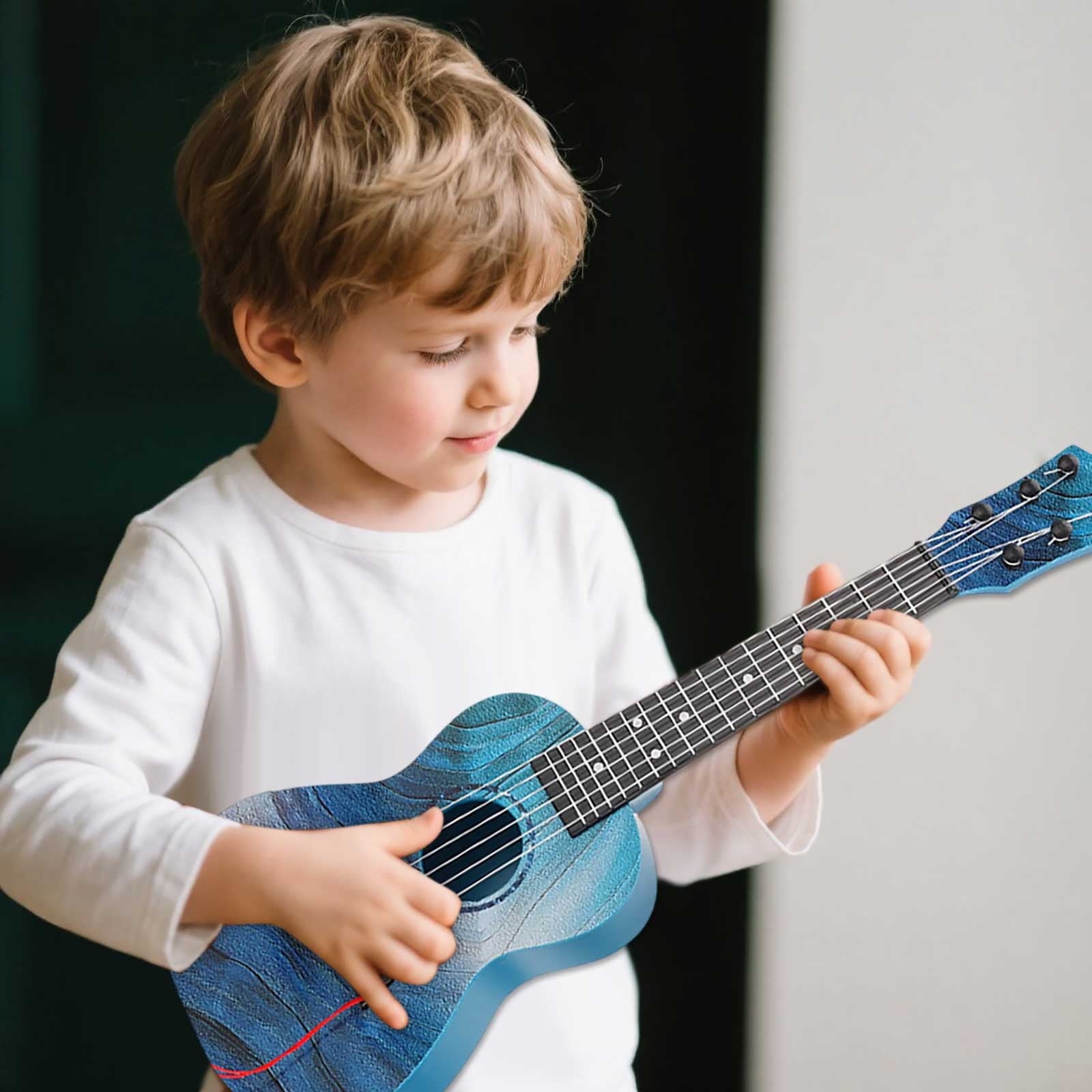 Introduce your child to the joy of music with this Kids Beginner Guitar—designed to make learning fun, easy, and accessible. Perfect for early education, this portable instrument combines durability, versatility, and a gentle learning curve to nurture young musicians. Why It’s Ideal for Your Child: Gentle Introduction to Music: Nylon strings are soft on tiny fingers, reducing discomfort and encouraging practice. As skills grow, steel strings add brightness and depth, keeping the guitar challenging and exciting. Play Anywhere, Anytime: Lightweight and battery-free, this guitar fits in a backpack or purse, making it perfect for school, travel, or impromptu family jam sessions. No setup, no hassle—just pick it up and play. Built to Grow With Them: Durable plastic construction resists scratches, drops, and wear, ensuring this guitar remains a trusted companion through years of learning. The compact size (47x16x7cm) is easy to store but feels substantial enough for serious practice. Encourages Creativity & Confidence: With its approachable design, this guitar helps kids build coordination, rhythm, and musical confidence. Whether they’re strumming simple chords or composing their first song, every note fosters a sense of achievement.Specs: Material: Durable plastic (sturdy, lightweight, kid-safe) String Options: Nylon (beginner-friendly) + Steel (advanced) Color: As shown (slight variations may occur due to monitor differences) Package Weight: 300g Package Dimensions: 47x16x7cm (allow 1-3mm measurement error)Give your child the gift of music with this Kids Beginner Guitar—where learning meets play, and every strum sparks a lifetime of passion. Strum, learn, and grow—today’s beginner is tomorrow’s maestro. Color: as the picture shows, (Due to the difference between different monitors, the picture may have slight color difference. please make sure you do not mind before ordering, Thank you!) Package weight: 300g Package size: 47x16x7cm,(Please allow 1-3mm error due to manual measurement. please make sure you do not mind before ordering.)