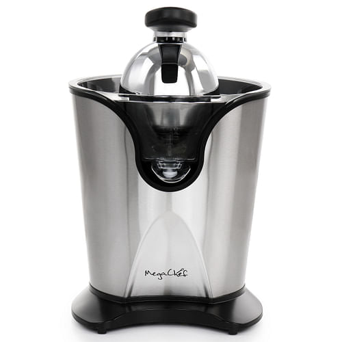 Enjoy a fresh cup of citrus juice with the MegaChef Stainless Steel Electric Motorized Press Citrus Juicer. Squeezes every delicious drop of juice from any citrus fruits by gently pushing the top handle. This essential kitchen tool features a reamer that accommodates large and small fruits with complete extraction. dishwasher safe removable parts for fast and easy cleaning. WARNING: This product can expose you to chemicals including Lead, which is known to the State of California to cause cancer and/or reproductive harm. For more information, go to www.P65W