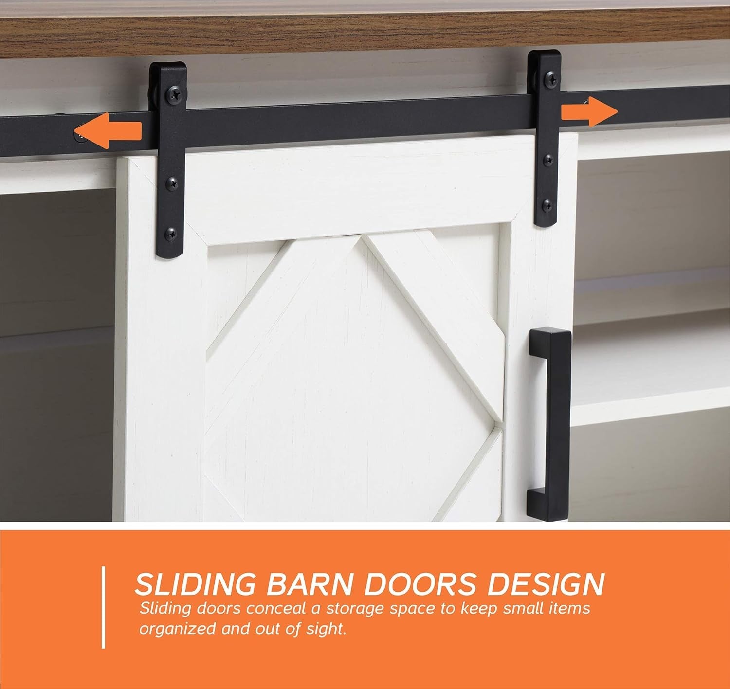 • Stylish Design: Crafted from unique spliced wood with metal bars and rivets, this TV stand features a simple frame and characteristic barn door elements, perfect for rustic, industrial, or retro-themed interiors.