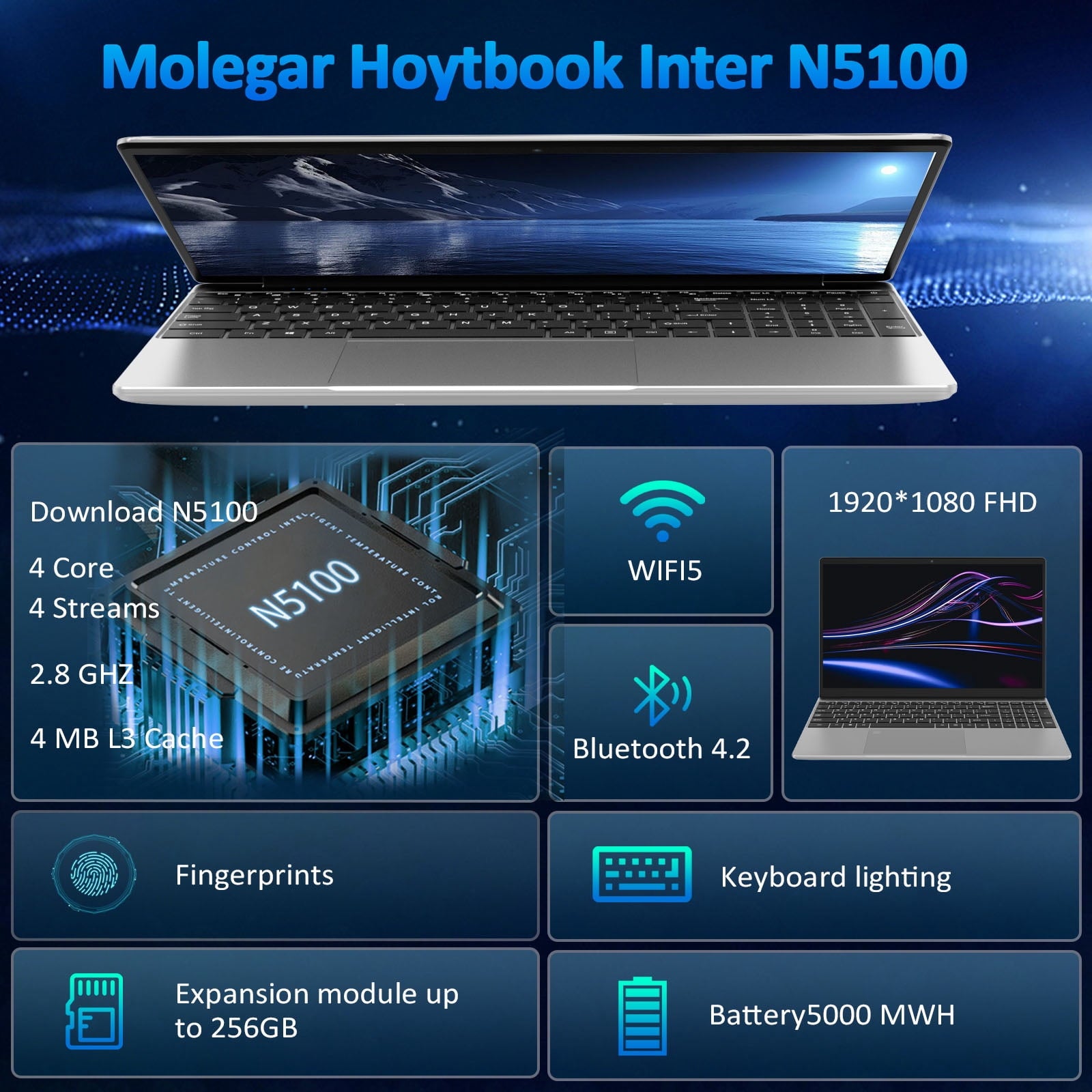 Elevate your daily computing experience with the Molegar 15.6-inch Full HD Laptop—your reliable companion for work, study, and entertainment, tailored for modern lifestyles! Powered by the Intel Quad-Core N5100 Processor, this laptop delivers smooth multitasking performance for all your daily needs. Tackle document editing, web browsing, video streaming, and light photo editing with ease, no lag or slowdowns to disrupt your flow. Equipped with Intel UHD Graphics, it renders crisp visuals and vibrant colors on the 15.6-inch Full HD (1920×1080) display. Whether you’re binge-watching your favorite shows, reviewing spreadsheets, or video-calling with colleagues, every detail comes to life with stunning clarity. Boasting 8GB RAM and 256GB SSD storage, the Molegar laptop ensures lightning-fast boot times, instant app launches, and ample space to store your files, photos, and media. The SSD’s superior speed outperforms traditional HDDs, making your daily operations more efficient than ever. Designed in a sleek, cool silver finish, this laptop blends style with portability. Its slim profile and lightweight build make it perfect for commuting to class, working from a café, or moving between home and the office. Key Specifications: Display: 15.6-inch Full HD (1920×1080) Processor: Intel Quad-Core N5100 Graphics: Intel UHD Graphics Memory: 8GB RAM Storage: 256GB SSD Color: Cool Silver Upgrade your computing gear today—grab your Molegar 15.6-inch laptop and enjoy a seamless blend of performance, style, and value!