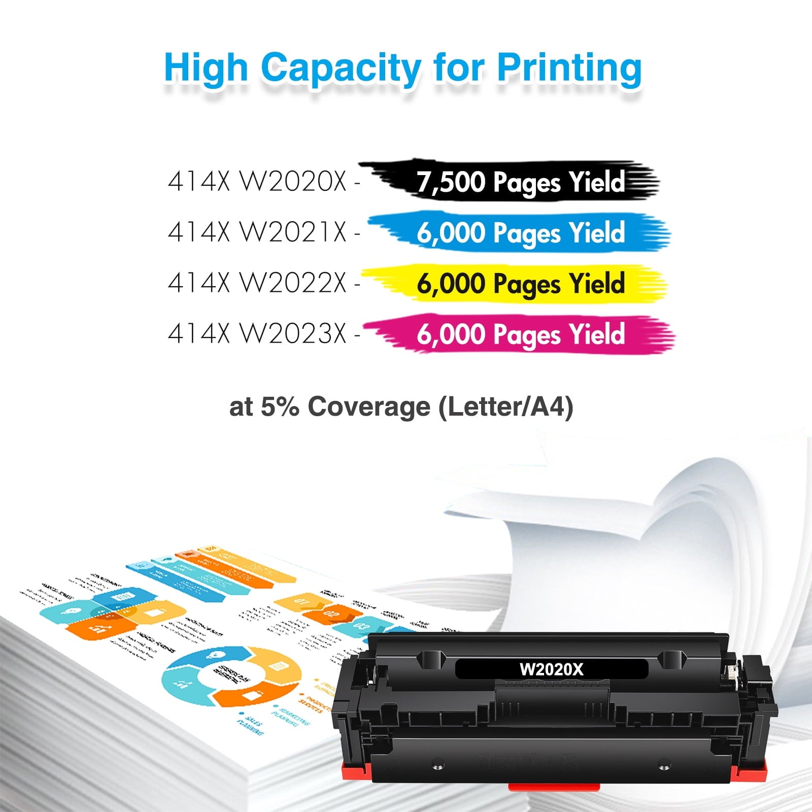 NO CHIP 414X Toner Cartridge Compatible for HP W2022X W20220A Color La