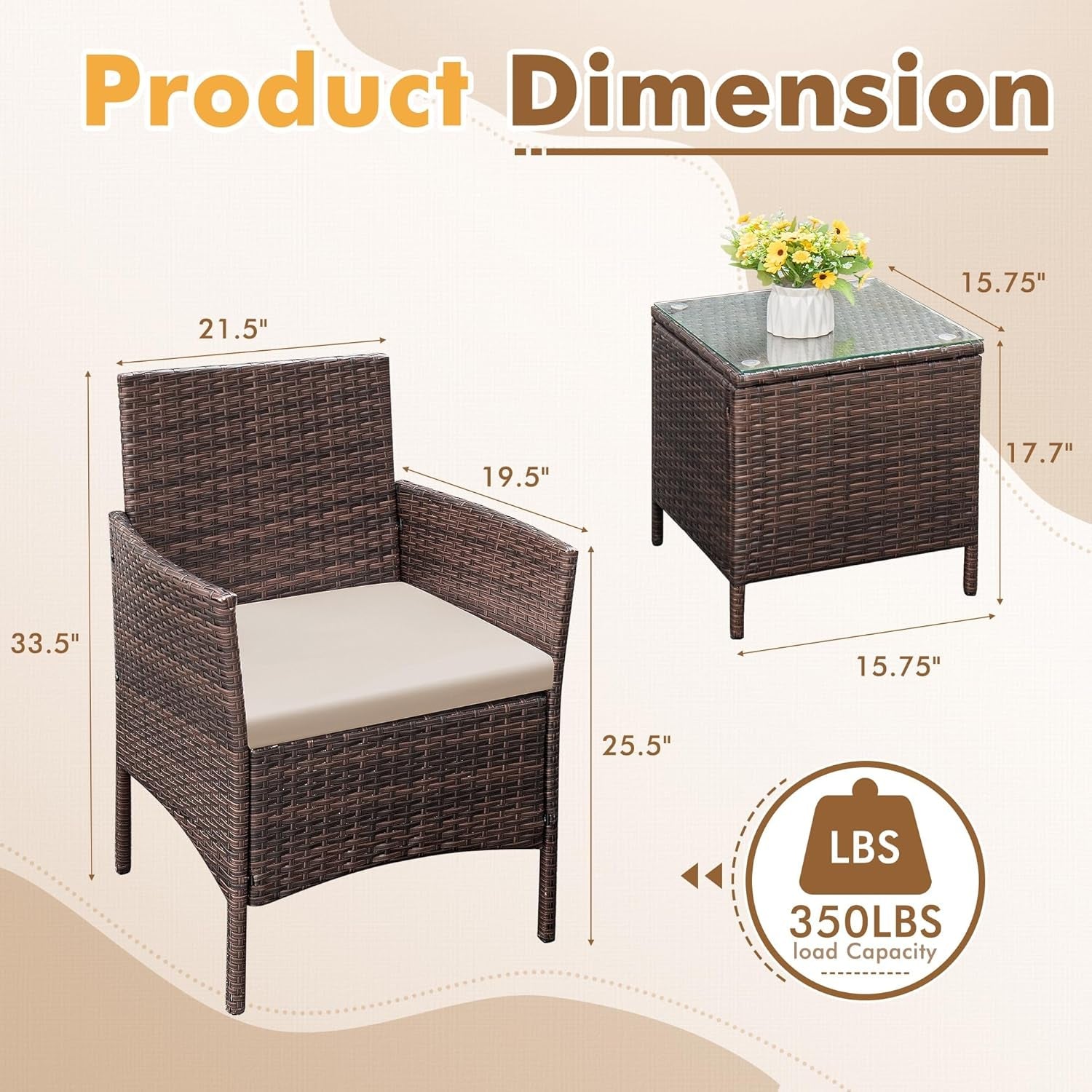 Patio Furniture Set 3 Pieces All-Weather Rattan Outdoor Furniture