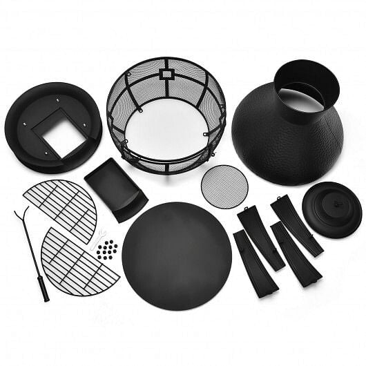 Specifications: Color: Black Dimension: 20" x20" x 43.5" (L x W x H) Net weight: 22 lbs Package included: 1 x Chimenea 2 x Charcoal grid 1 x Chimney mesh cover 1 x Poker 1 x Cap Box Qty: 1(May vary by batch)