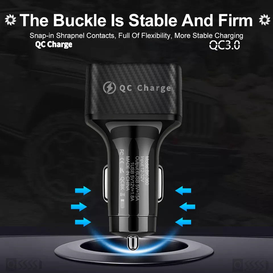 PBG 6-Port USB Car Charger with LED - Universal Fast Charge
