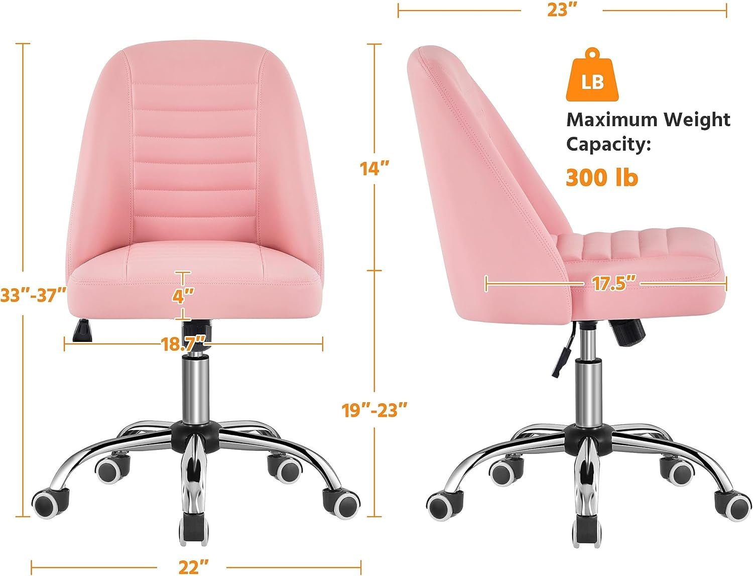 If you’re in search of a small desk chair that doesn’t compromise on style, our armless mid-back home office chair is an excellent option. The combination of deluxe faux leather upholstery, recessed arms and chrome-accented frame will lend a touch of class to your room. A durable steady frame makes sure our customers enjoy a comfortable and relaxing sitting experience. The foam-padded seat and subtly curved backrest give excellent body support while relieving muscle stress caused by long hours of working, applying makeup, or studying.