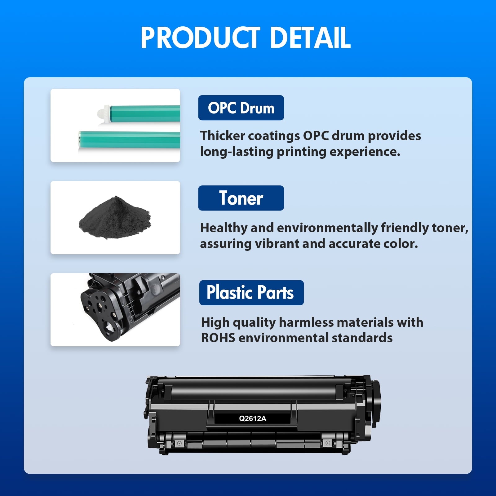 12A Toner Cartridge Compatible for HP Laserjet 1020 Toner Cartridge 📃Package Contents: Compatible for hp 12a black toner cartridge 2 Pack | hp toner 12a Q2612A 📃Yield Page: Really high yield, about 2 * 2,000 pages per 12A Q2612A toner cartridge,based on 5% coverage (Letter/A4). 📃Hp 12a toner cartridge Compatibal Printers: LaserJet 1010 1012 1015 1018 1020 1022 3015 3020 3030 3050 3050Z 3052 3055 M1005 M1319 MFP printer. 📃Why us: If you are looking for HP 12A Toner Cartridges for your printers without any quality issue like leaking or not recognize etc.,and if you do not want to pay extra pounds for toners like Brand name one, then our ink is the one to make things best. Give it a chance and get fabulous shopping experience! If there is a problem with the Q2612A Toner Cartridge, please contact us to request a new one. 📃VIPInk is a reseller of printer consumable products with its warehouses in East and West Coast since 2015. We carry wide range of compatible toner cartridges for most major printer brands. Our services are to provide quality printing supplies, Especially the compatible for HP Q2612A Toner Cartridges Black at a discount price, while offering the great shopping experience possible. Our products are certified with ISO 9001 and ISO 14001.