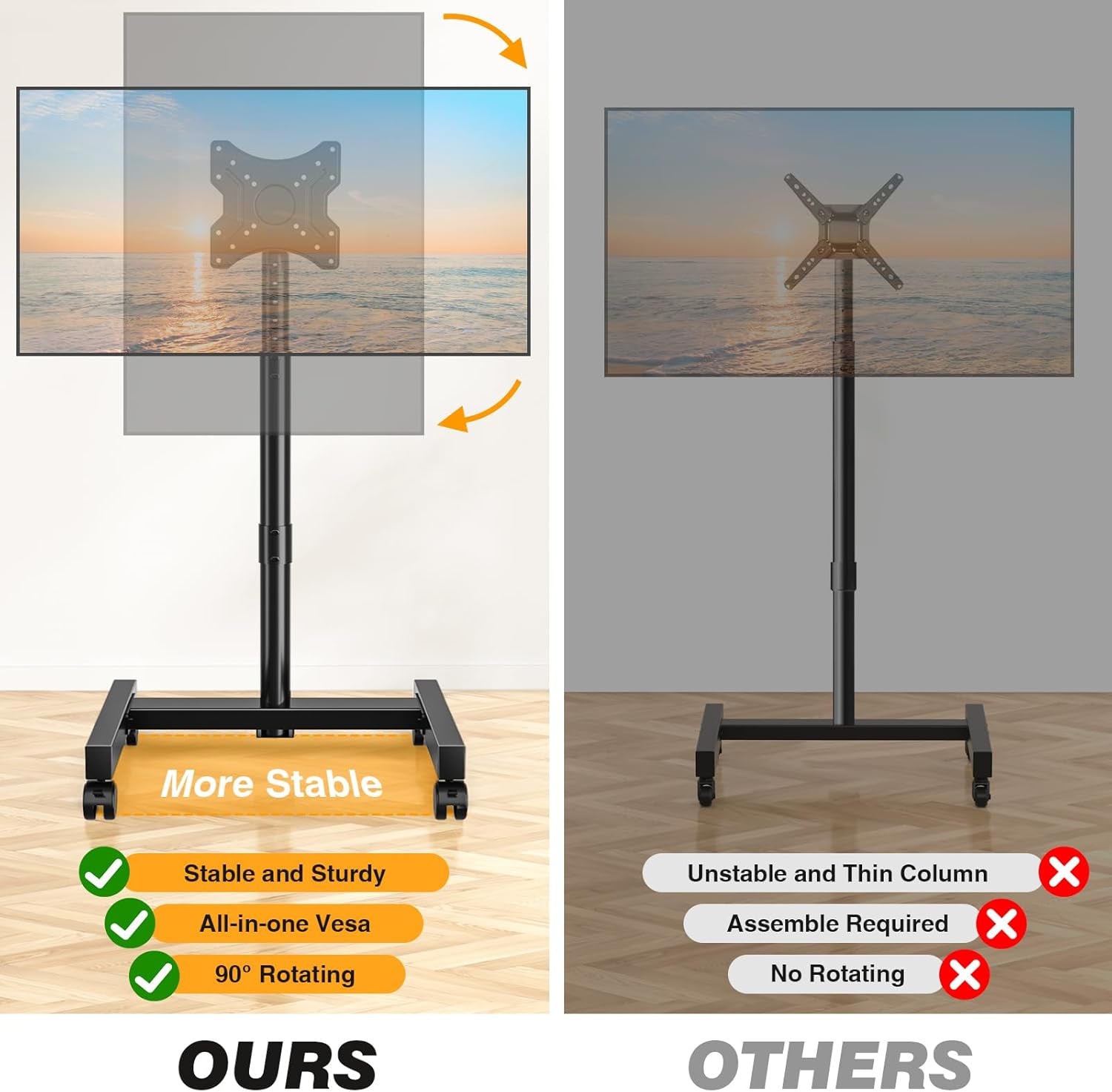 The 5Rcom Mobile TV Stand is the perfect solution for enhancing your viewing experience. Designed to accommodate a wide range of TVs, this versatile stand allows you to switch between horizontal and vertical orientations effortlessly, making it ideal for any scenario, from family movie nights to professional presentations.