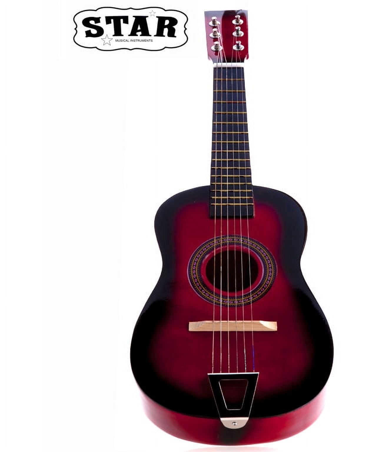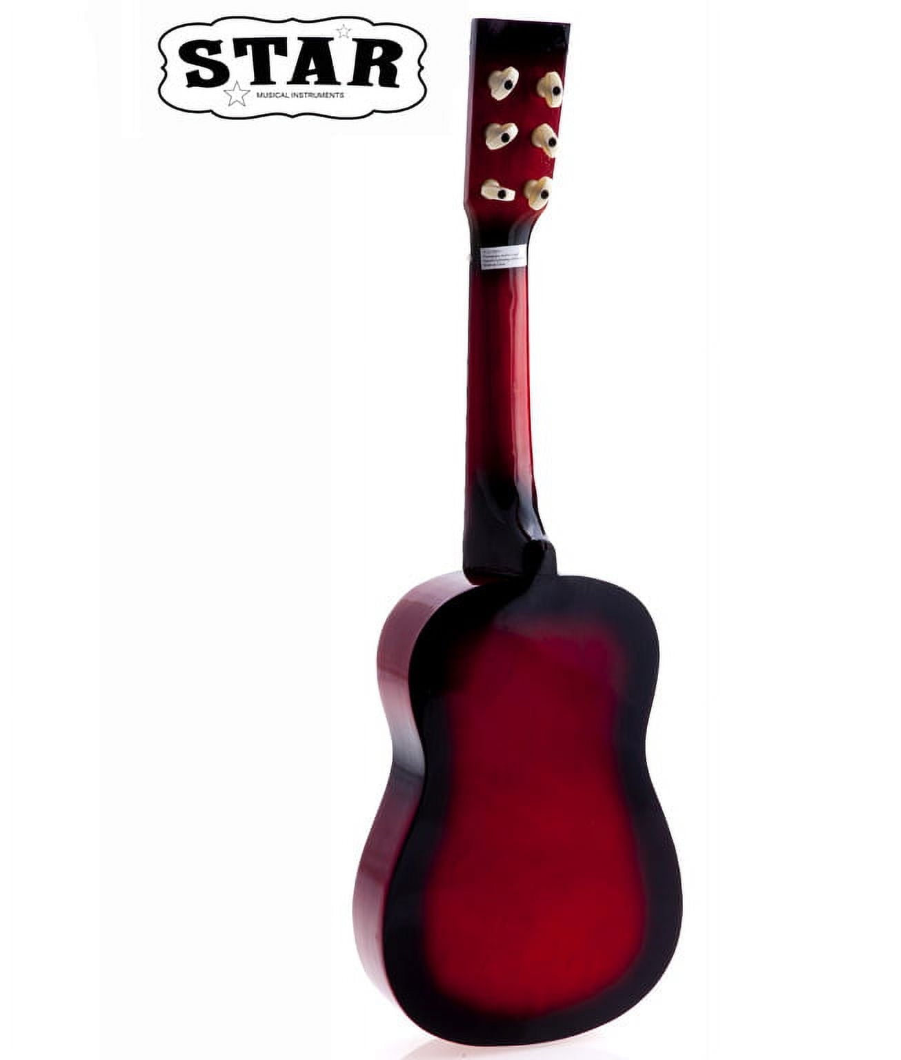 This beautiful Acoustic Guitar is the ideal toy for toddlers and children. It is a steel string Acoustic Guitar, which is perfect for "pretend" play. This Guitar is 23 "in length and features a hardwood body, lindenwood binding, and 15 frets. Please note that this is a TOY Guitar and may NOT tune properly. To tune the Guitar, we recommend tightening the screws on the tuning knobs. These screws are located on the tuning knobs on the back of the Guitar tuning machine. This guitar is everything your child needs to get started playing. This 23 "Acoustic Guitar set makes a great gift for kids and is a great value for the money. This Guitar comes packaged in the original manufacturer's box. The box has a full color photo of a Guitar on the front. Please keep this in mind when purchasing this Guitar as a gift. The Guitar Includes an E extra String and guitar Pick.
