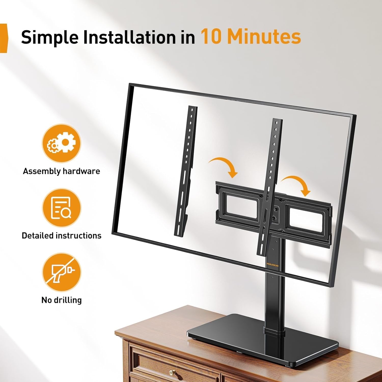 Enhance your viewing experience with our Height-Adjustable Universal Tabletop TV Stand. Designed to accommodate a wide range of televisions, this versatile stand combines durability with style, making it a perfect addition to your home entertainment setup.
