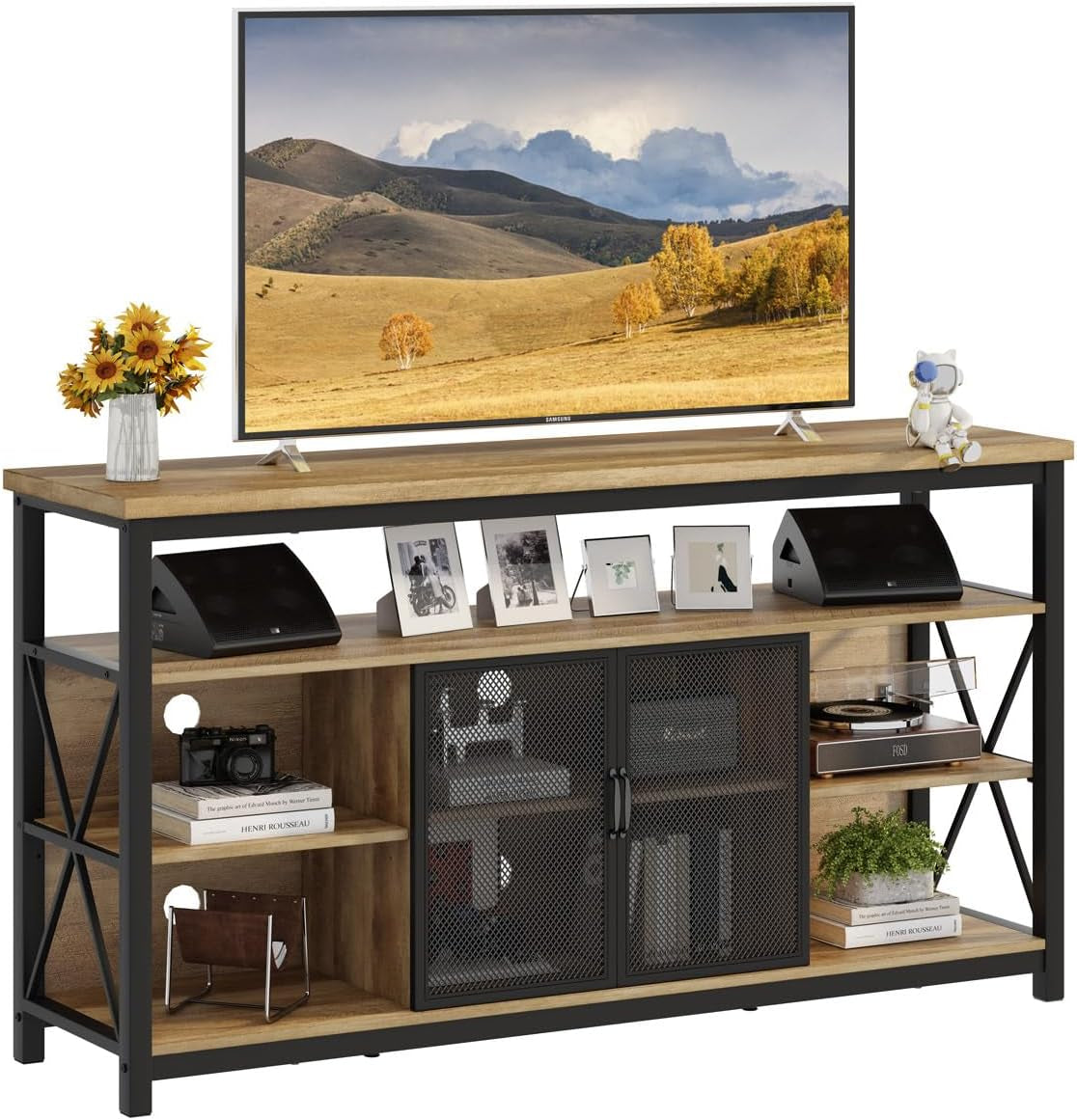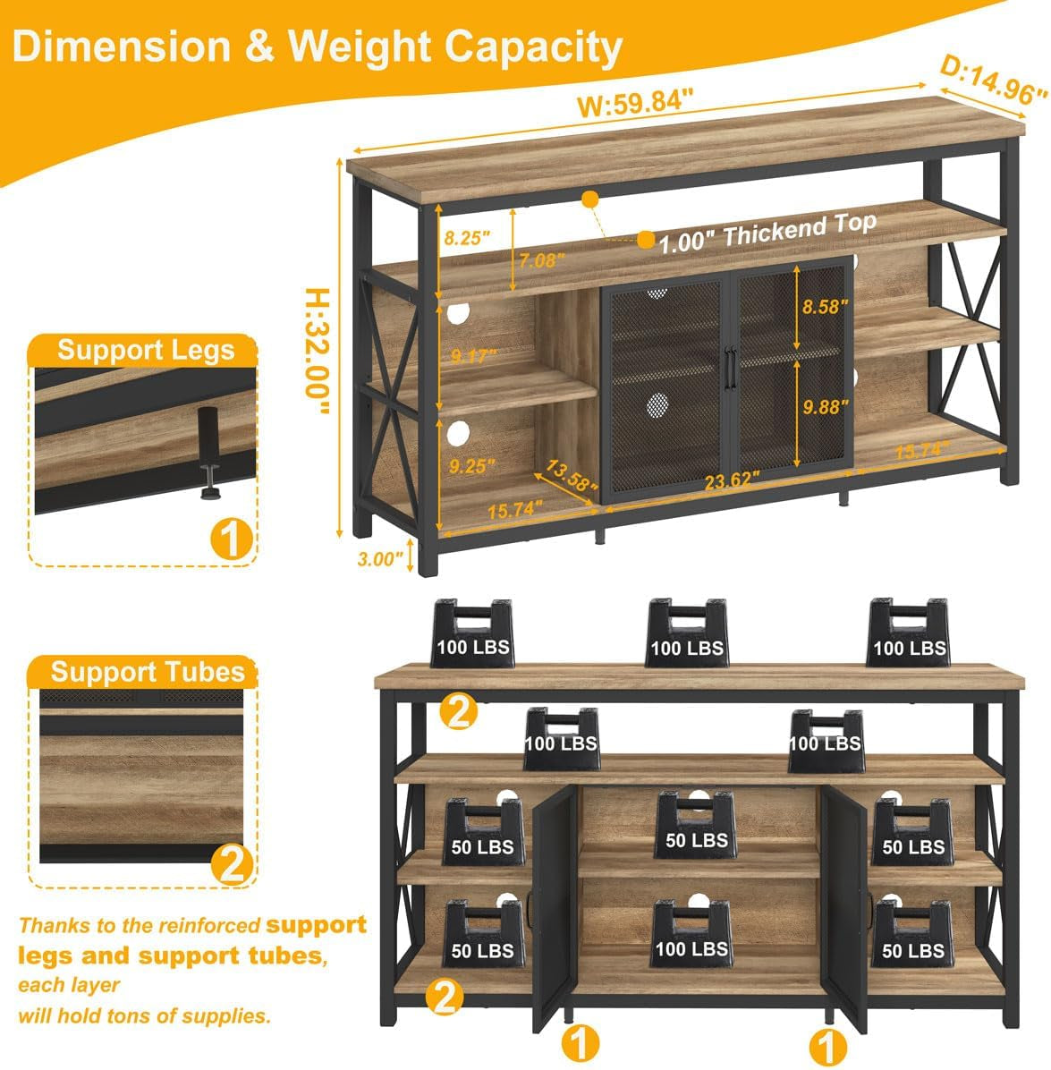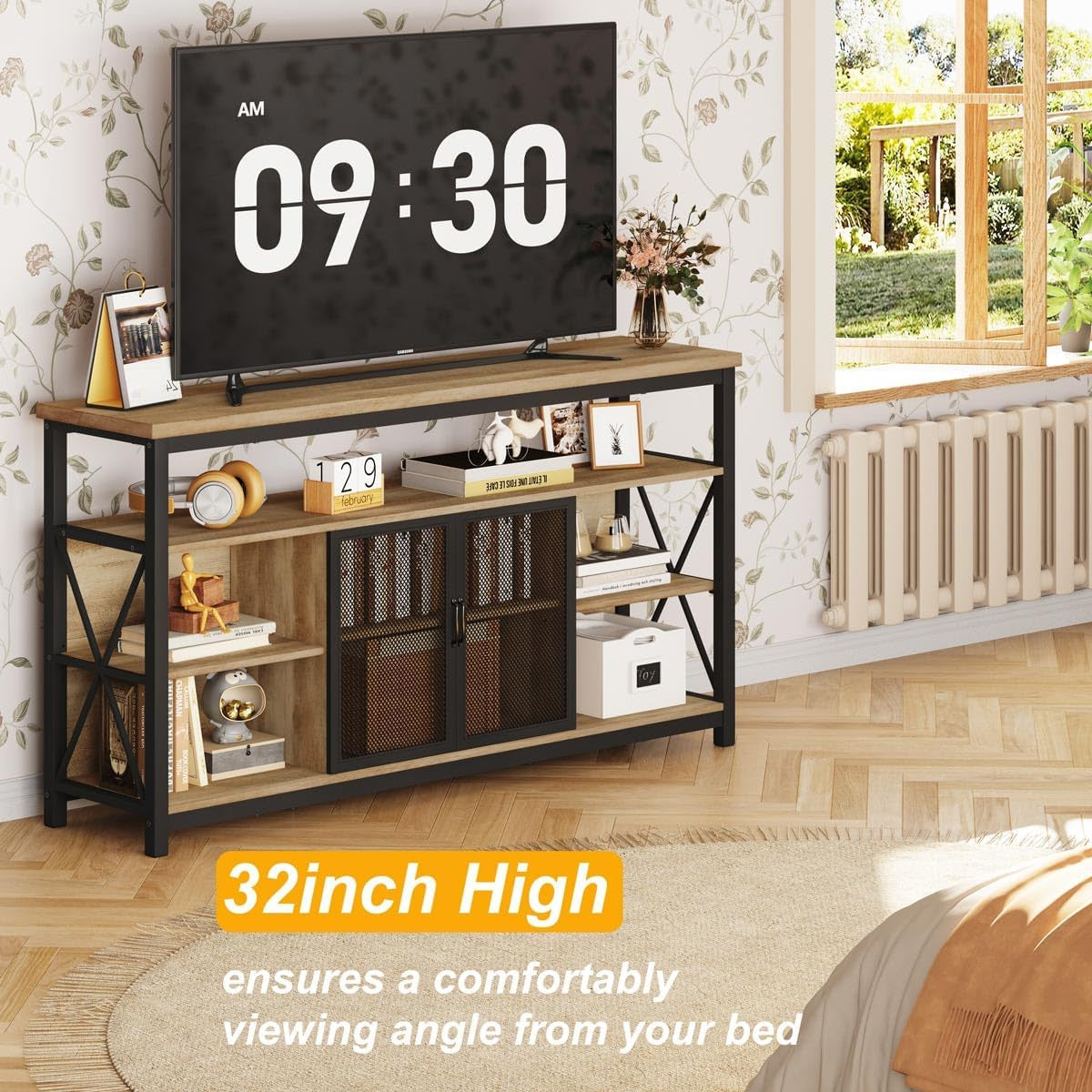 Elevate your entertainment experience with this Industrial Farmhouse Tall TV Stand, a perfect combination of style, practicality, and durability.