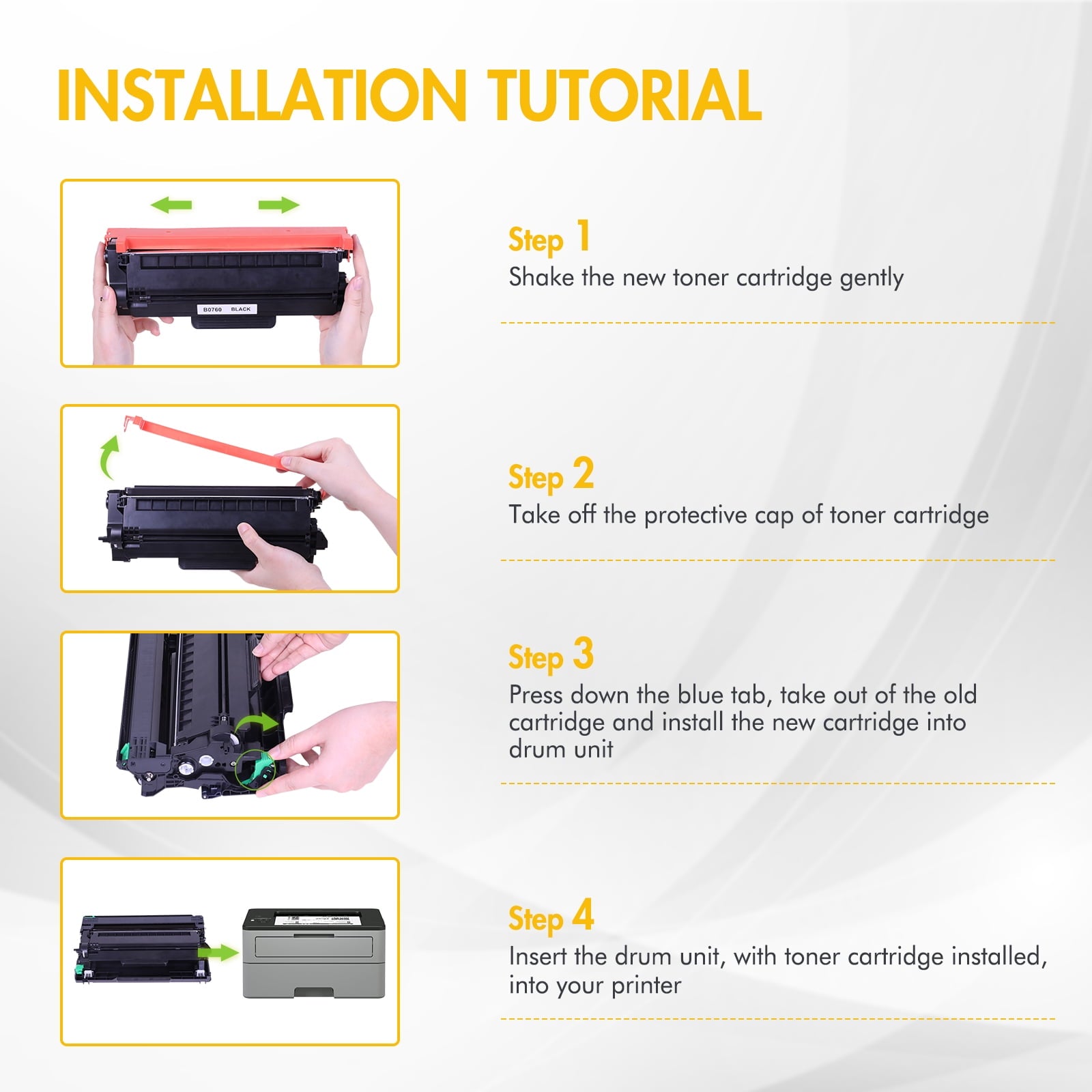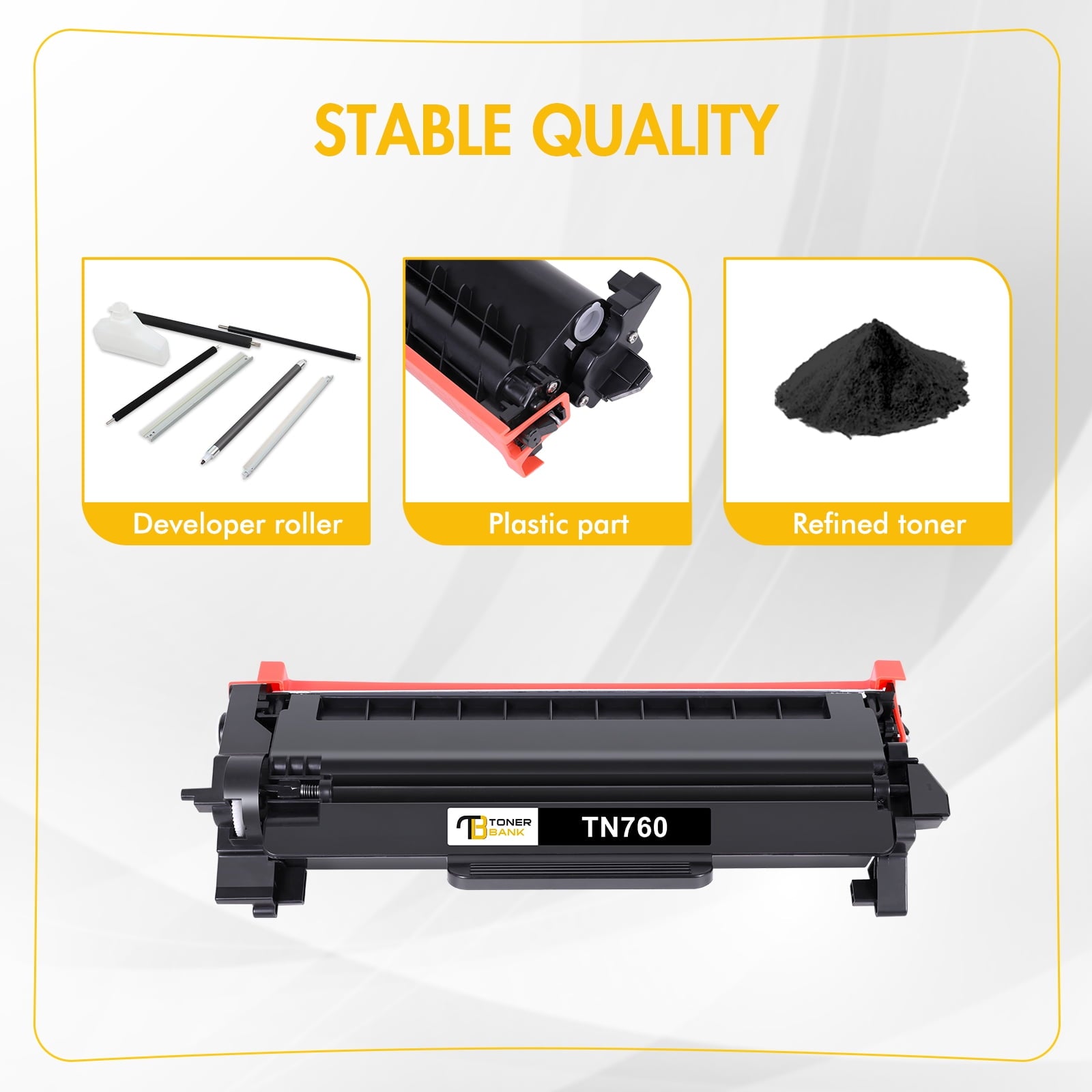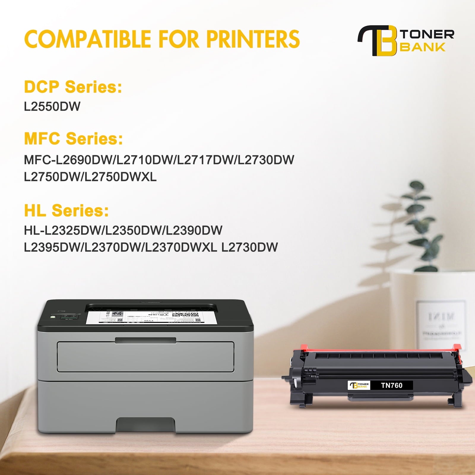 Toner Bank is a reseller of printer consumable products with its warehouses in East and West Coast since 2015. We carry wide range of compatible toner cartridges for most major printer brands. Our services are to provide quality printing supplies Especially the Compatible Toner Cartridges at a discount price, while offering the great shopping experience possible. Product Specification: Included: 2 packs black compatible replacement toner for Brother TN760 TN 760 TN-760 TN730 TN 730 TN-730 high yield toner cartridge TN-730/TN-760 Compatible for Brother Printers: DCP-L2550DW Compatible for Brother Printers: HL-L2350DW HL-L2395DW HL-L2390DW HL-L2370DW HL-L2370DWXL HL-L2325DW Compatible for Brother Printers: MFC-L2710DW MFC-L2750DW MFC-L2690DW MFC-L2730DW MFC-L2750DWXL MFC-L2717DW Page Yield: 3,000 pages per black cartridge based on 5% coverage (Letter/A4)