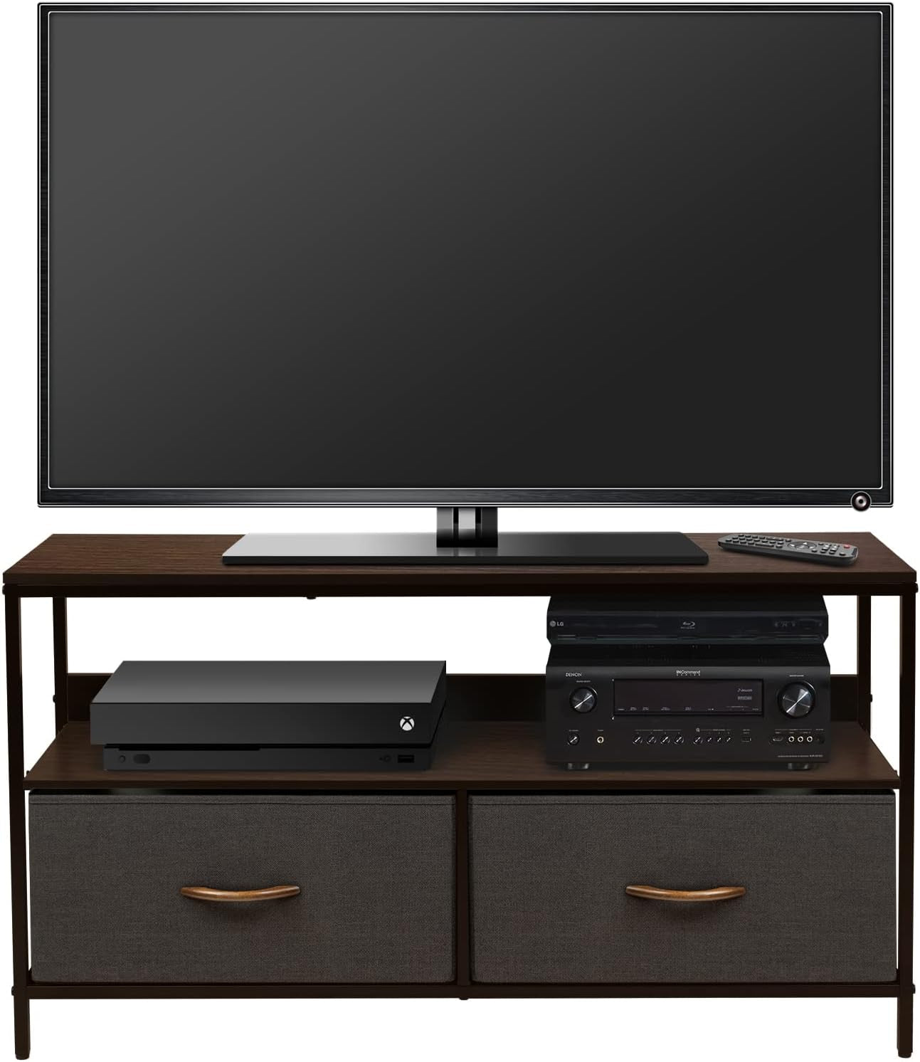 Transform your living space with our Stylish 2-Drawer TV Stand. This versatile piece combines functionality and contemporary design, making it the perfect addition to any home, office, or dorm room. With a spacious top, a middle shelf, and two fabric drawers, this stand not only serves as a practical TV table but also helps you stay organized.