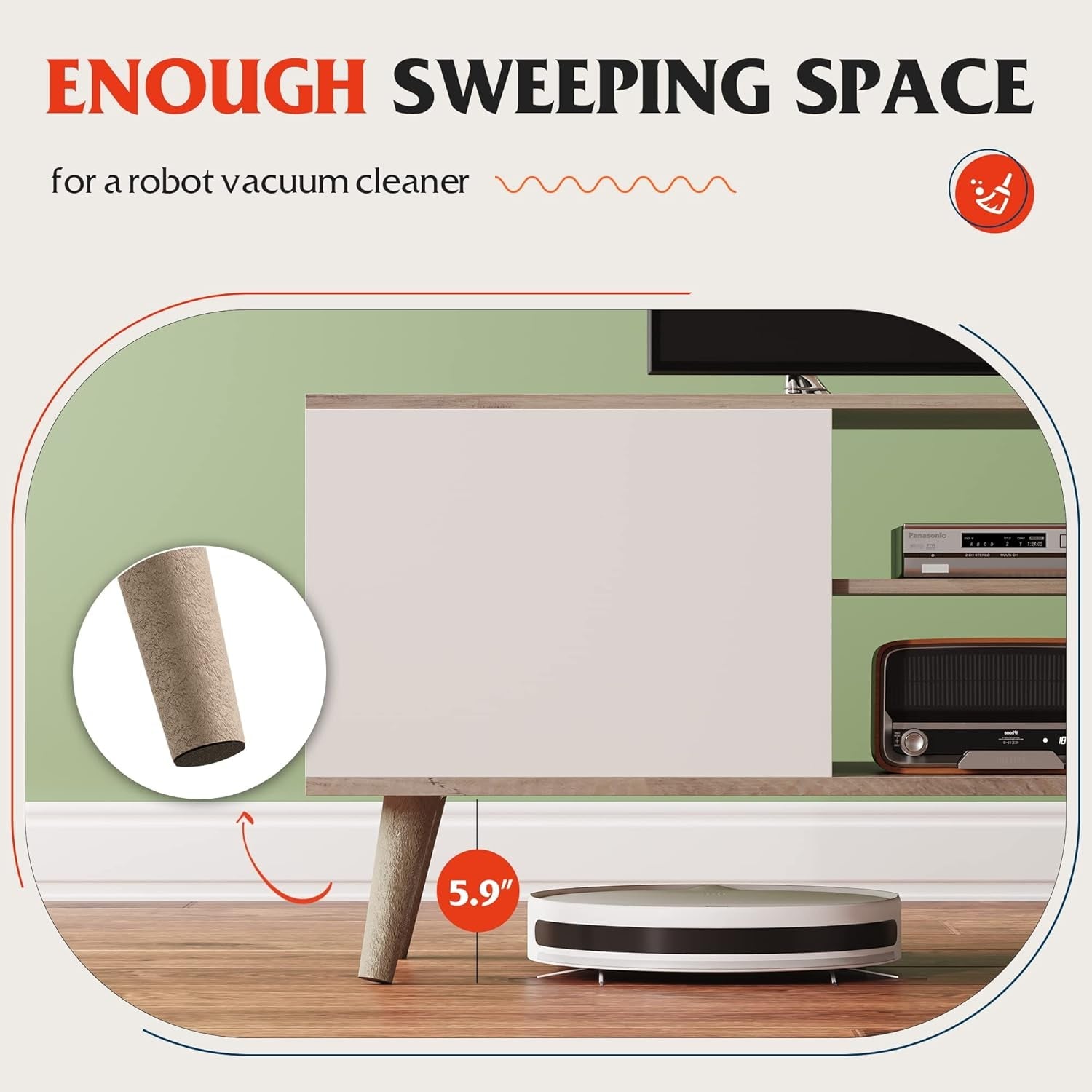 This modern and stylish TV stand is designed to complement your living room decor while providing functional storage solutions. With its unique embossed wood grain design, it effortlessly blends with various home styles, making it a perfect addition to your space.