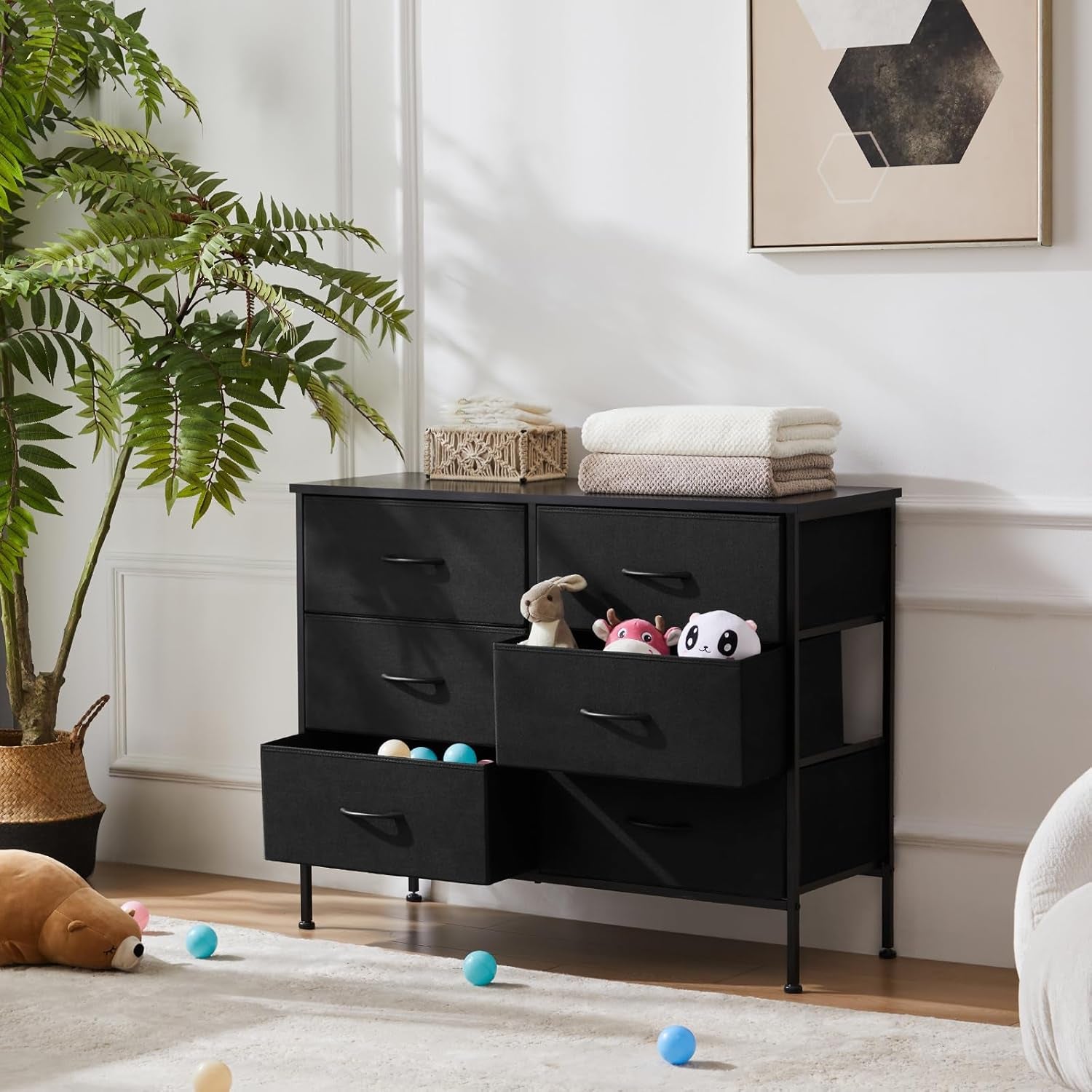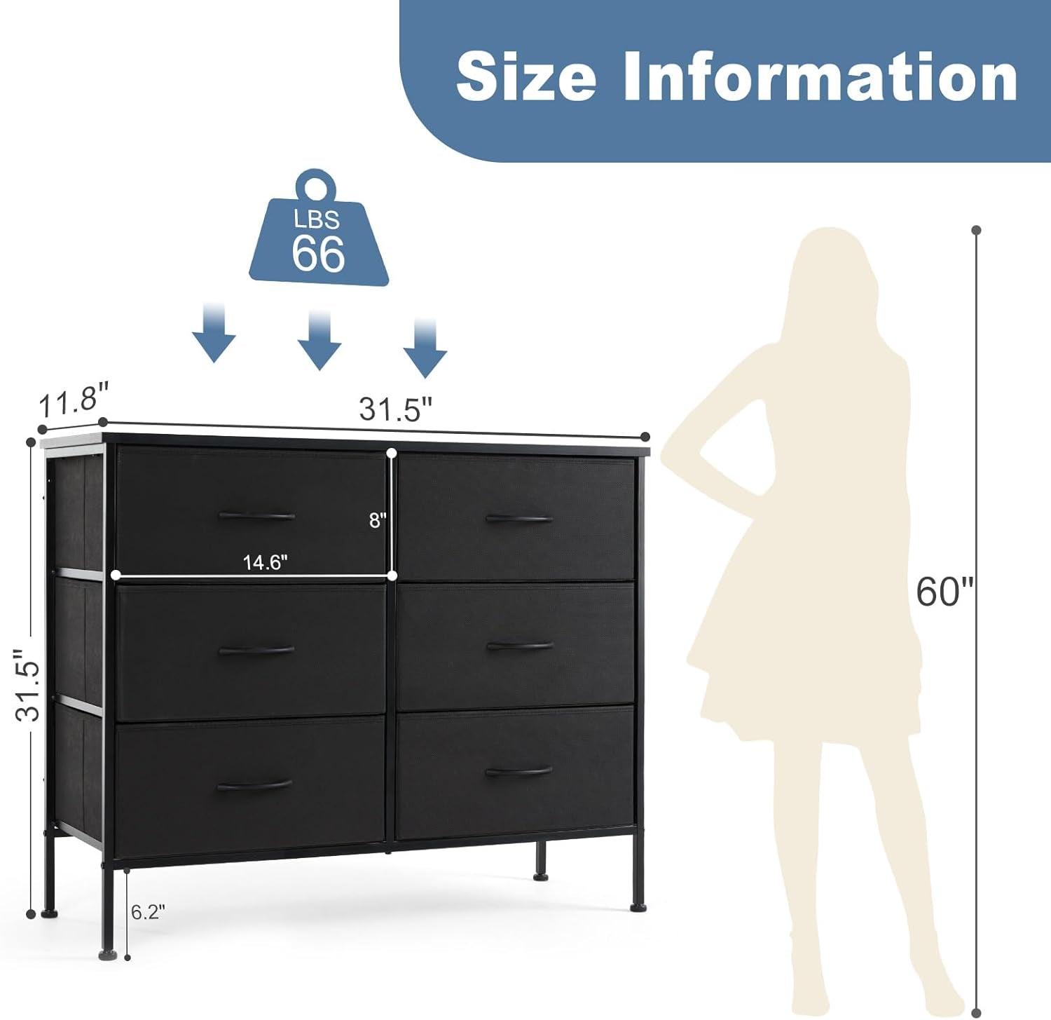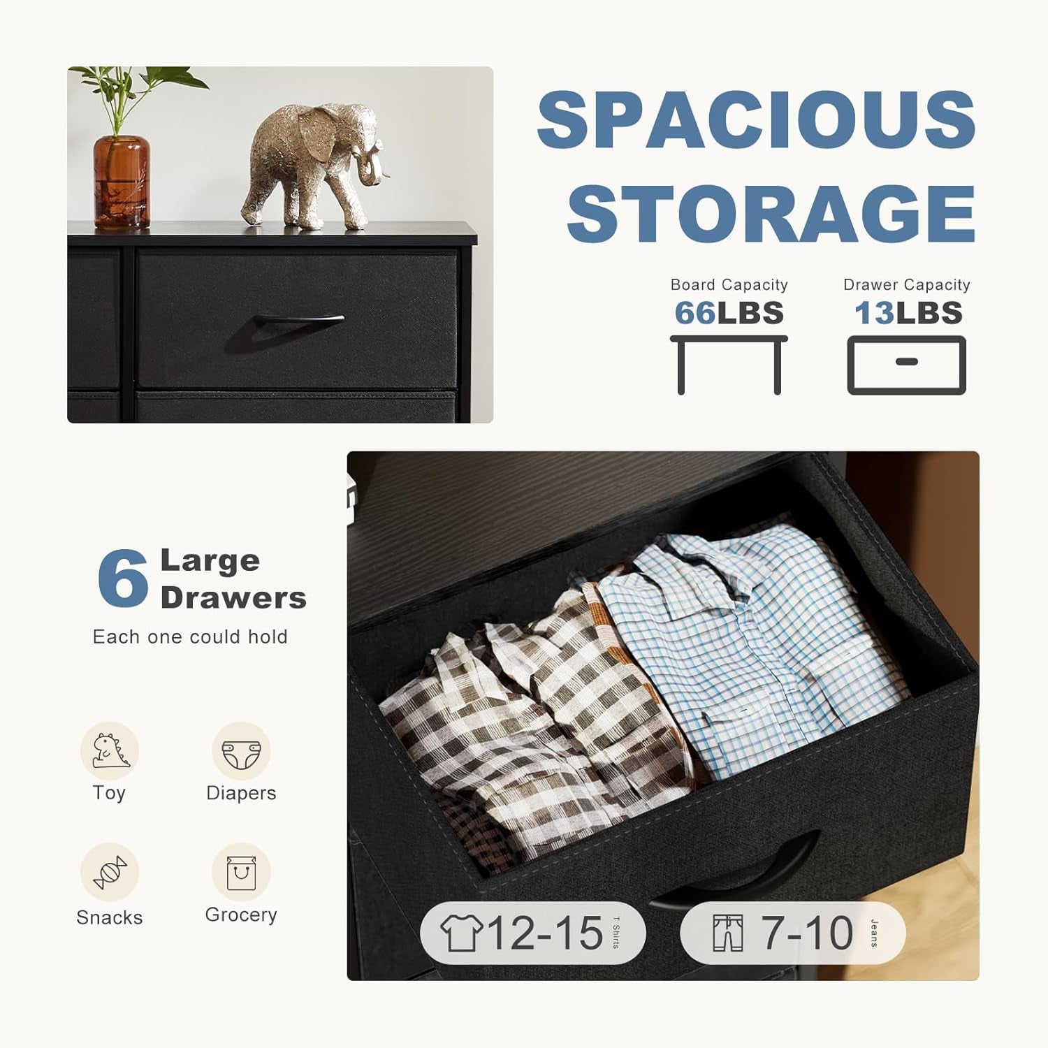 This Stylish Black Dresser is a perfect blend of functionality and modern design. With its six spacious fabric drawers, it offers ample storage while enhancing your home decor. Crafted from high-quality MDF board, this dresser is built to last, providing durability and stability for all your storage needs.